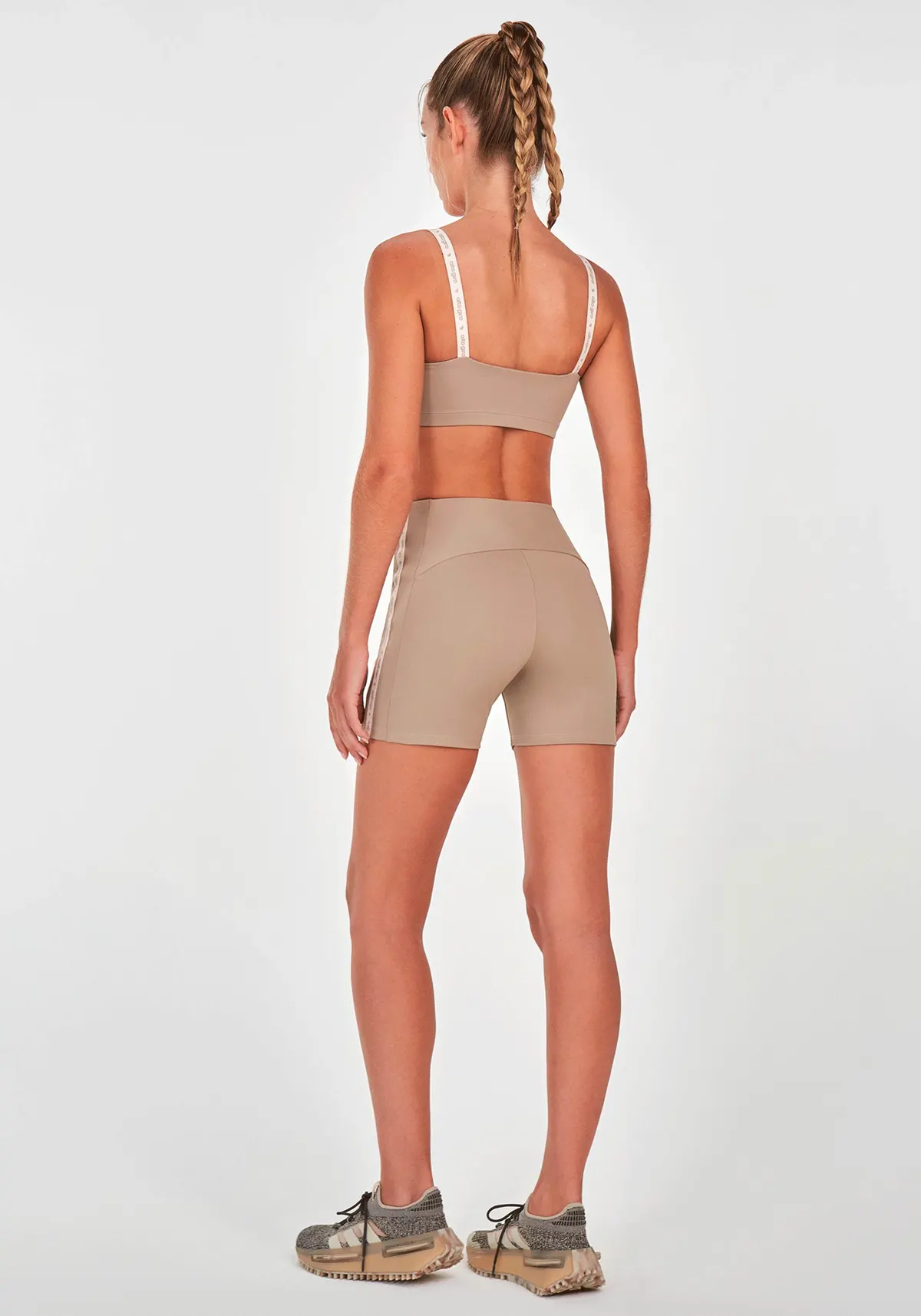 O short apresenta modelagem slim, shape justo, comprimento curto, cós alto, detalhe de elástico personalizado da logo nas laterais.