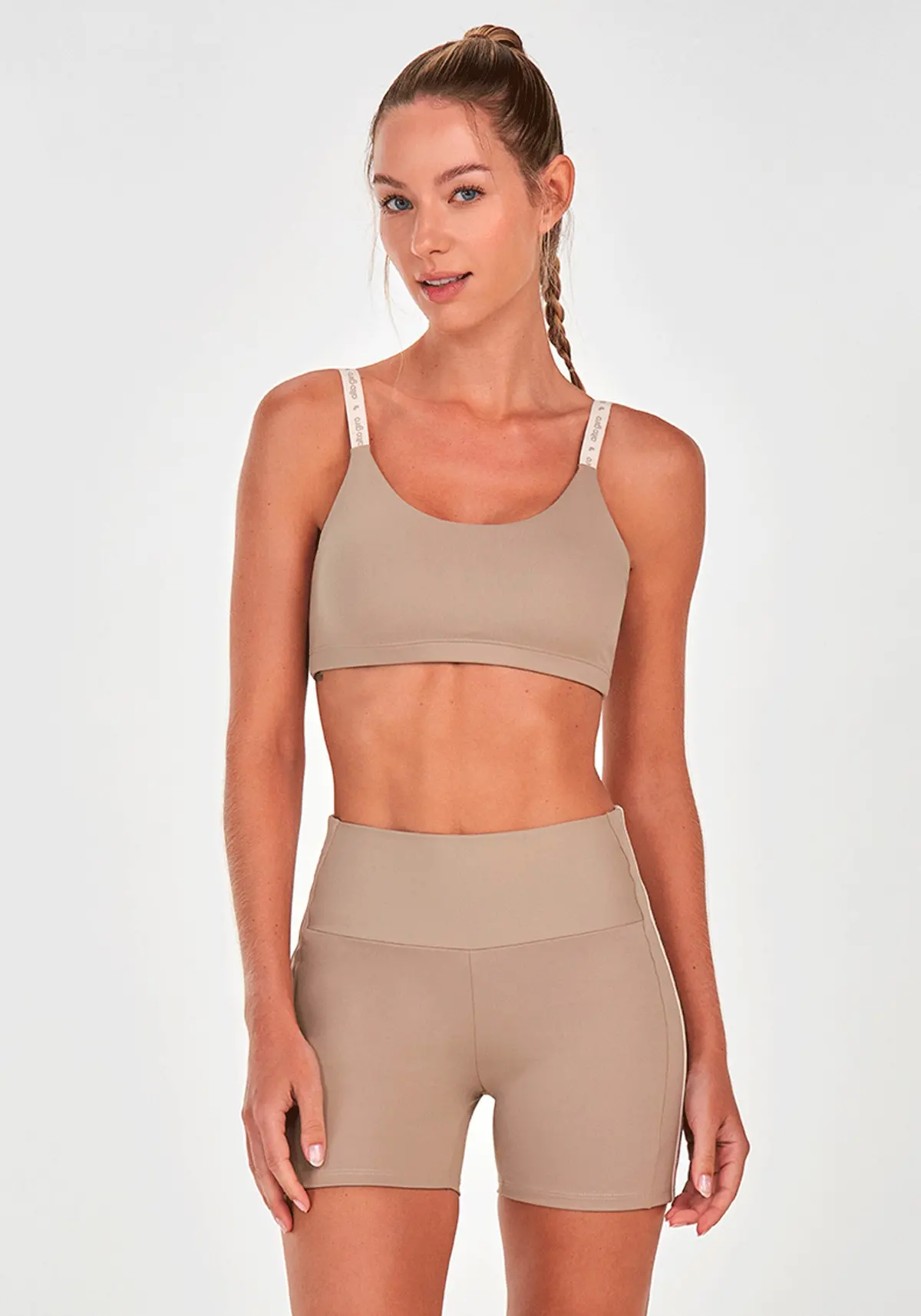 Bermuda curta fitness com elástico personalizado nas laterais, cheio de estilo para seus treinos com mais conforto e confiança.
