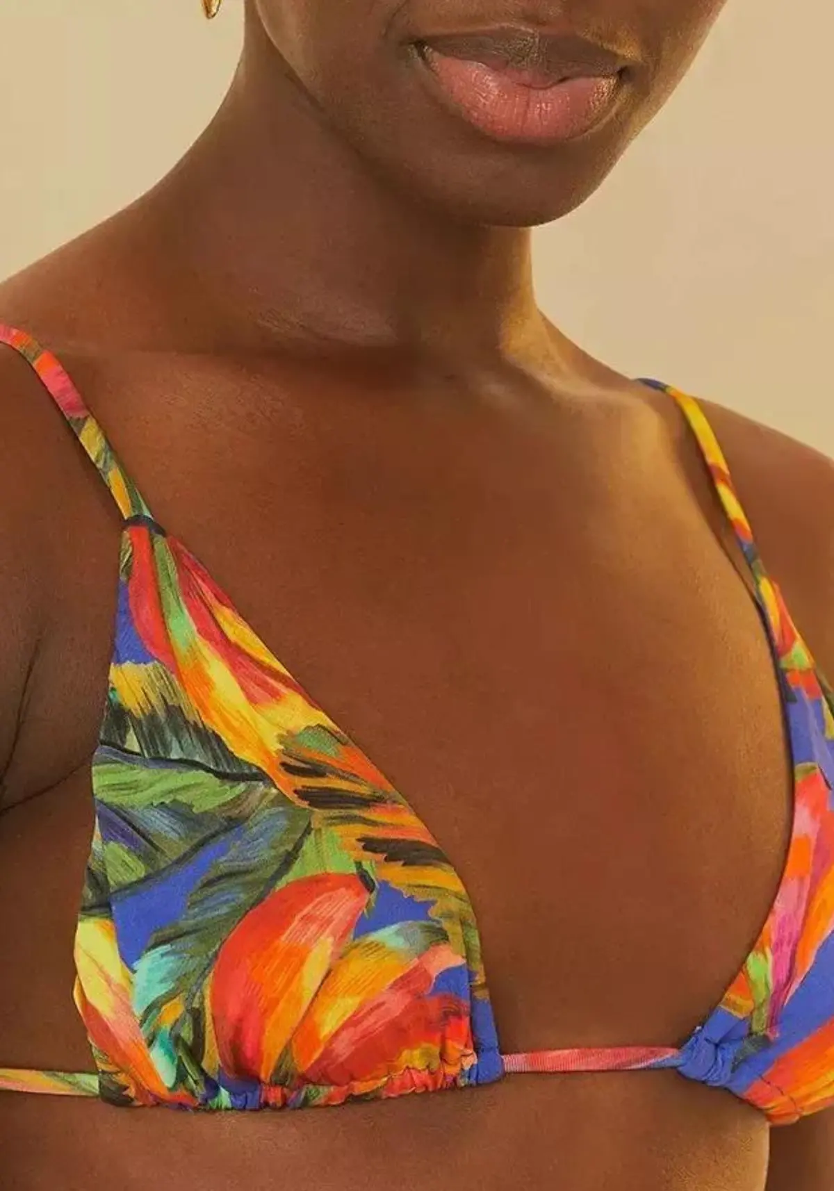 As coleções da Farm geralmente apostam em biquínis que variam desde modelos cortininha e cintura alta até peças mais modernas, sempre mantendo a essência colorida e despojada da marca.