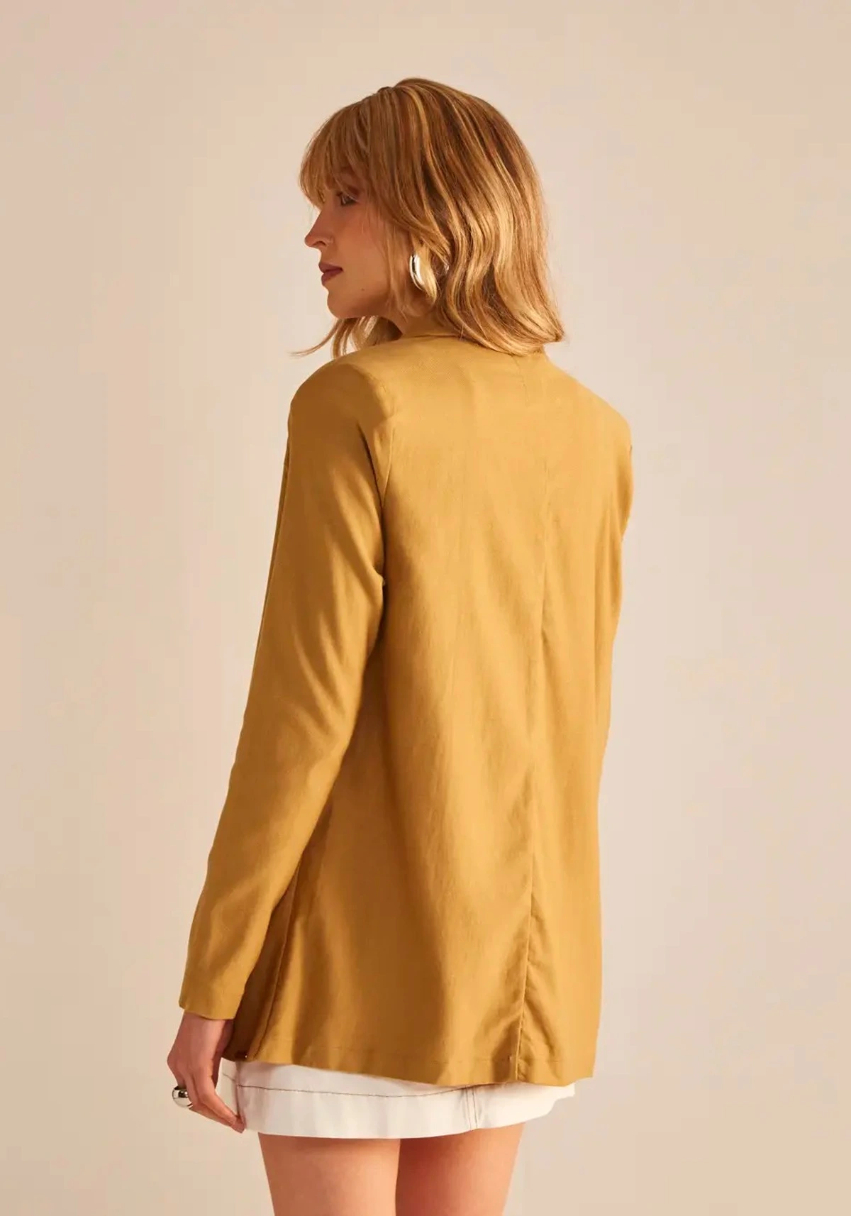 O Blazer Longo Sommer em Linho Bege é a peça ideal para quem busca sofisticação leve e atemporal. Com corte alongado e modelagem reta, ele combina perfeitamente o estilo clássico com o toque natural e elegante do linho, tornando-se um item curinga para composições modernas e versáteis.