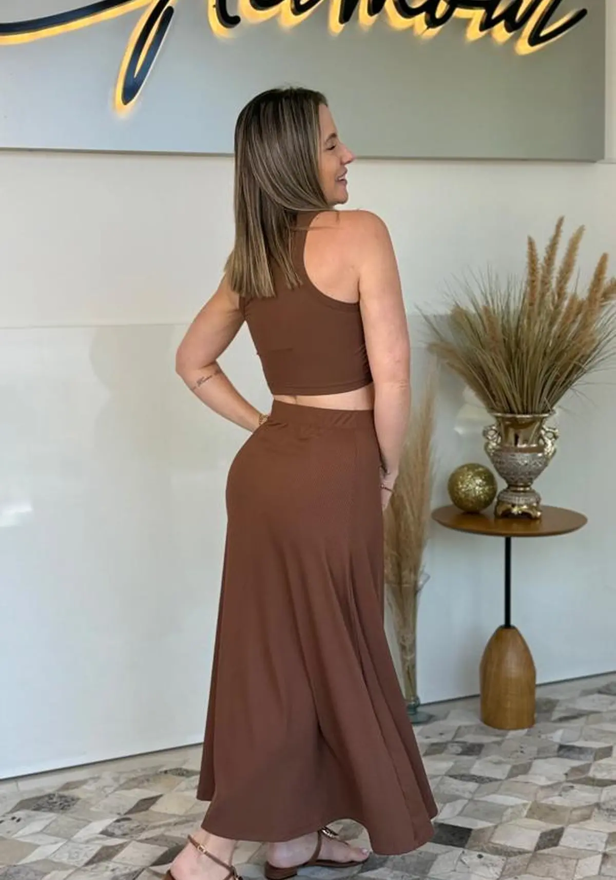 O tom marrom carvalho adiciona sofisticação e modernidade à produção, funcionando como um neutro contemporâneo que combina com uma variedade de cores e estilos. Com modelagem básica e acabamento clean, é perfeita tanto para compor looks casuais quanto para produções mais urbanas e elegantes.