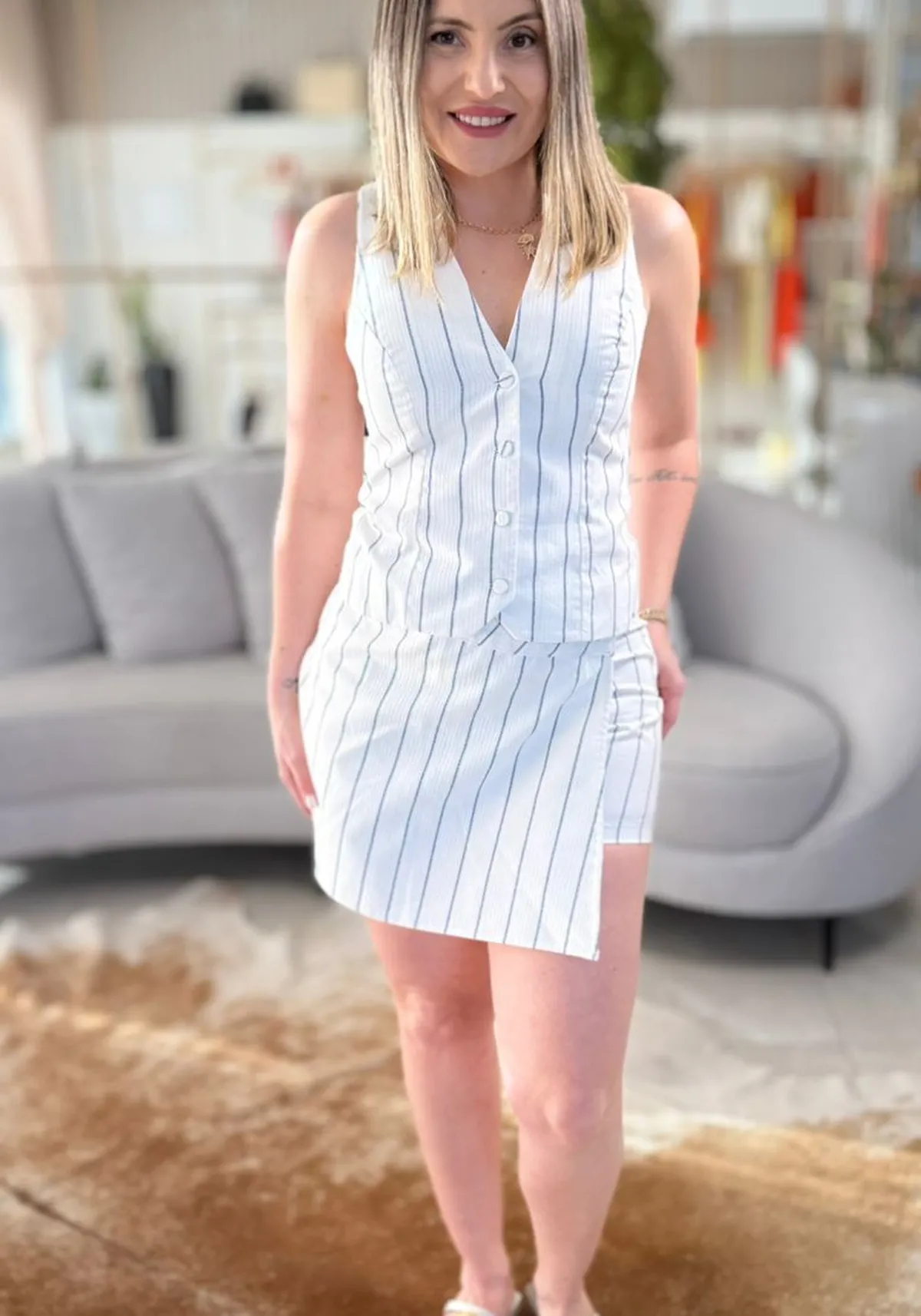 Blusa colete listrado em alfaiataria, com estilo elegante e moderno.