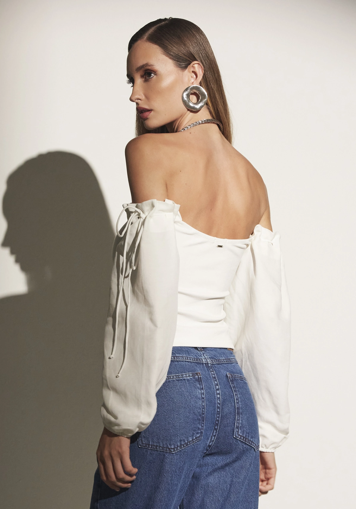 Blusa ombro a ombro em linho, uma proposta diferenciada que traz modernidade e muito estilo.