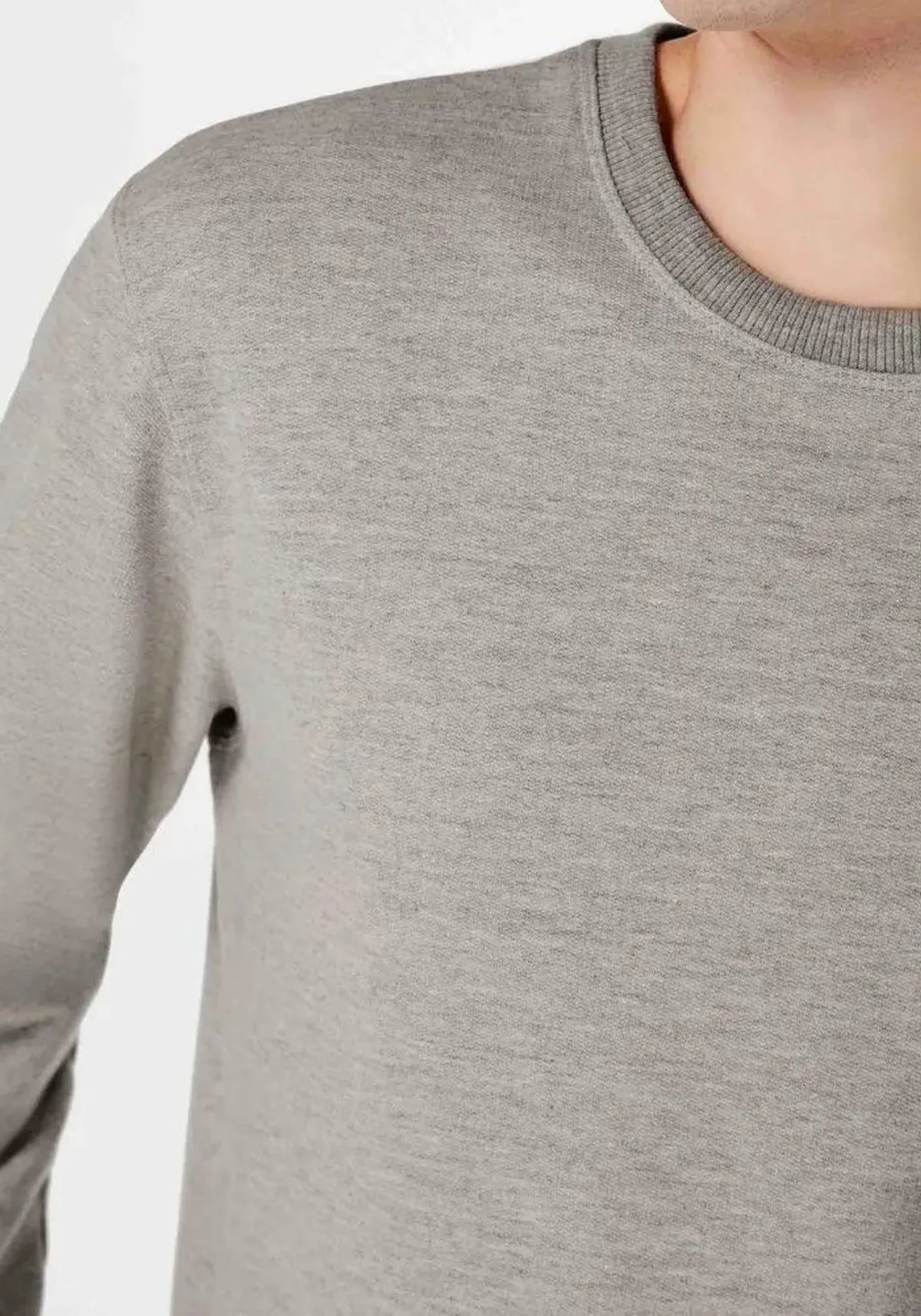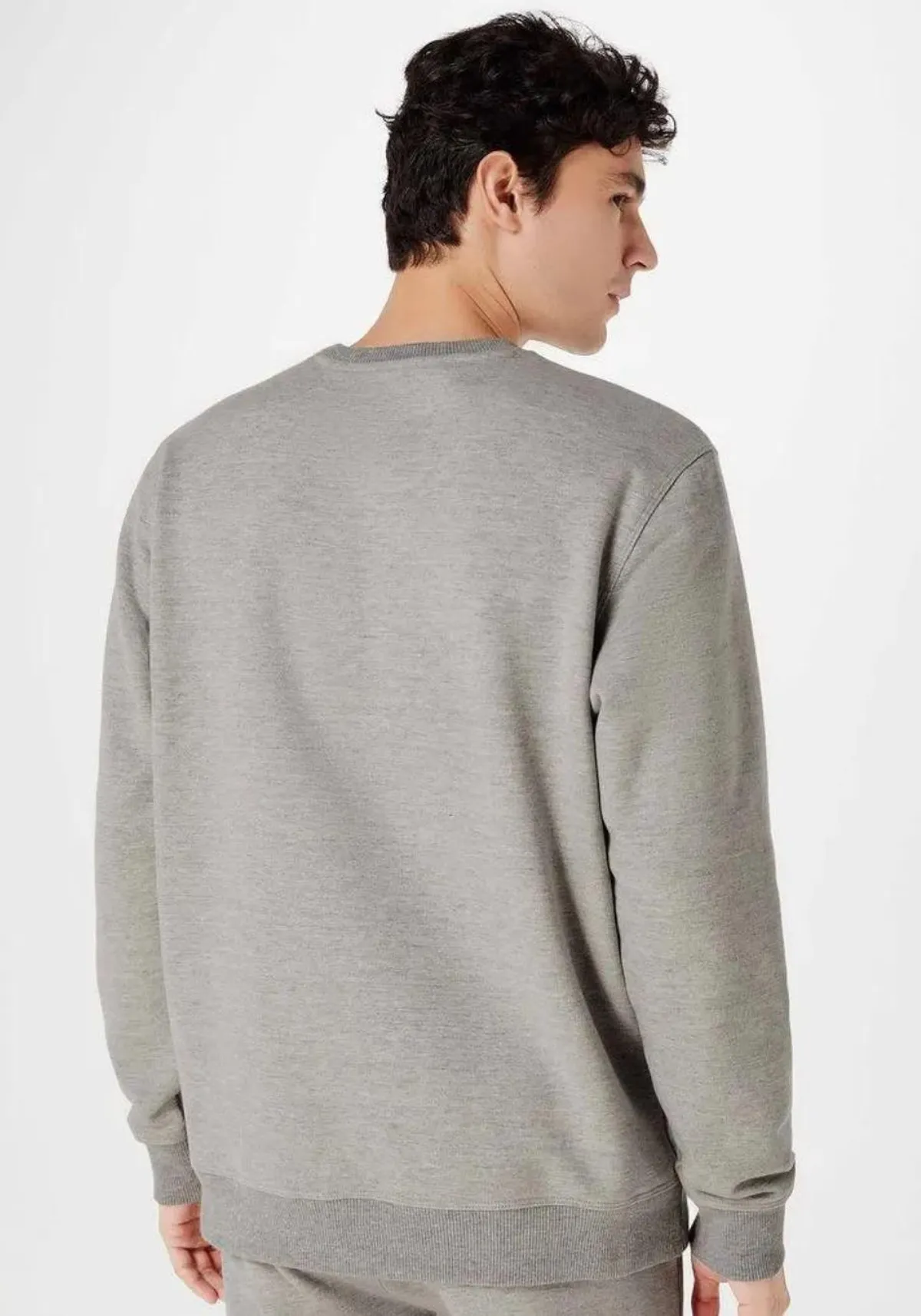 Possui mangas longas, modelagem comfort, decote redondo, punhos e barra em canelado.