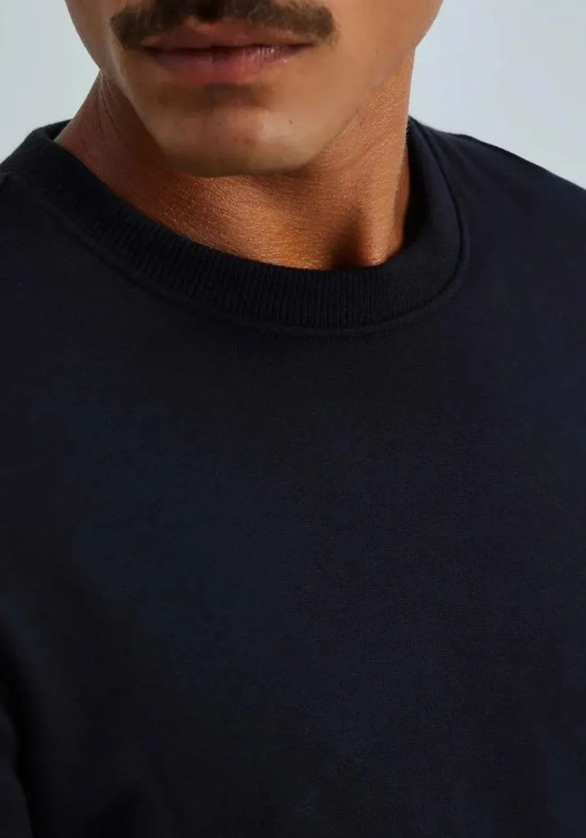 Possui mangas longas, modelagem comfort, decote redondo, punhos e barra em canelado.