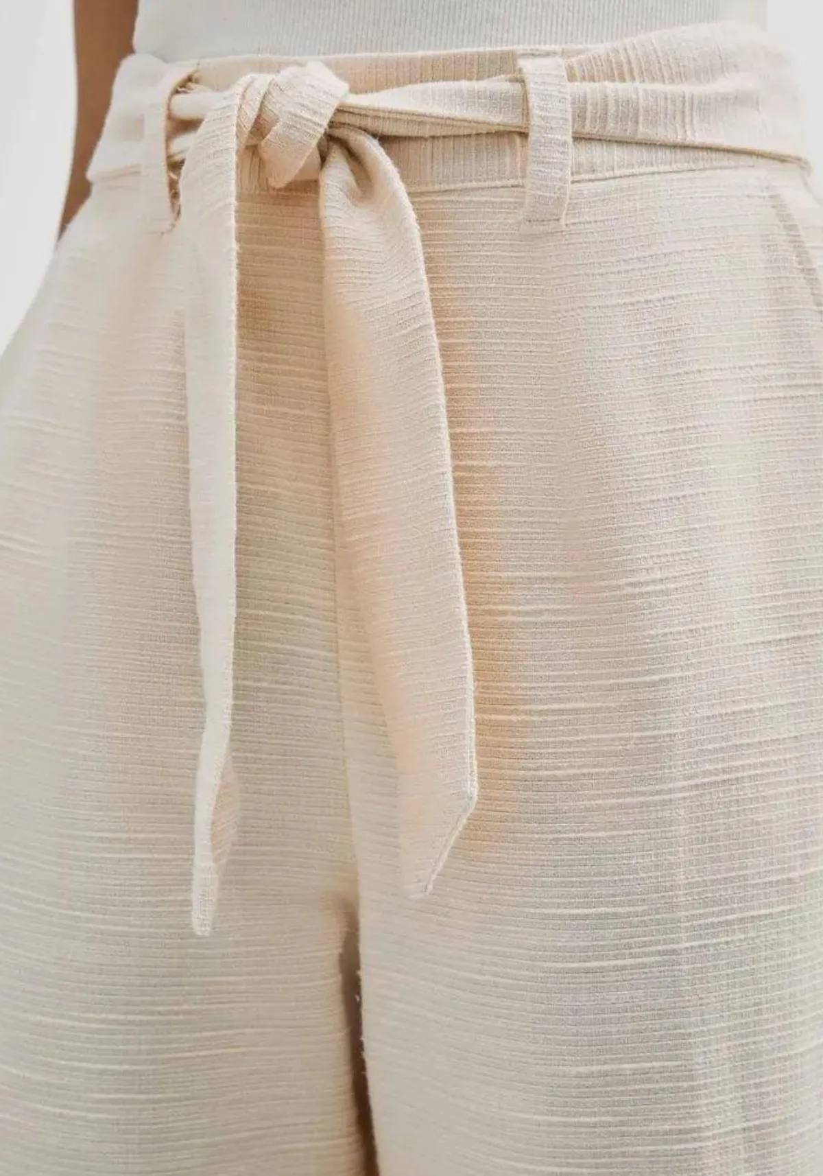 Calça reta clochard elaborada em algodão texturizado, sendo perfeita para criar looks sofisticados e cheios de estilo.