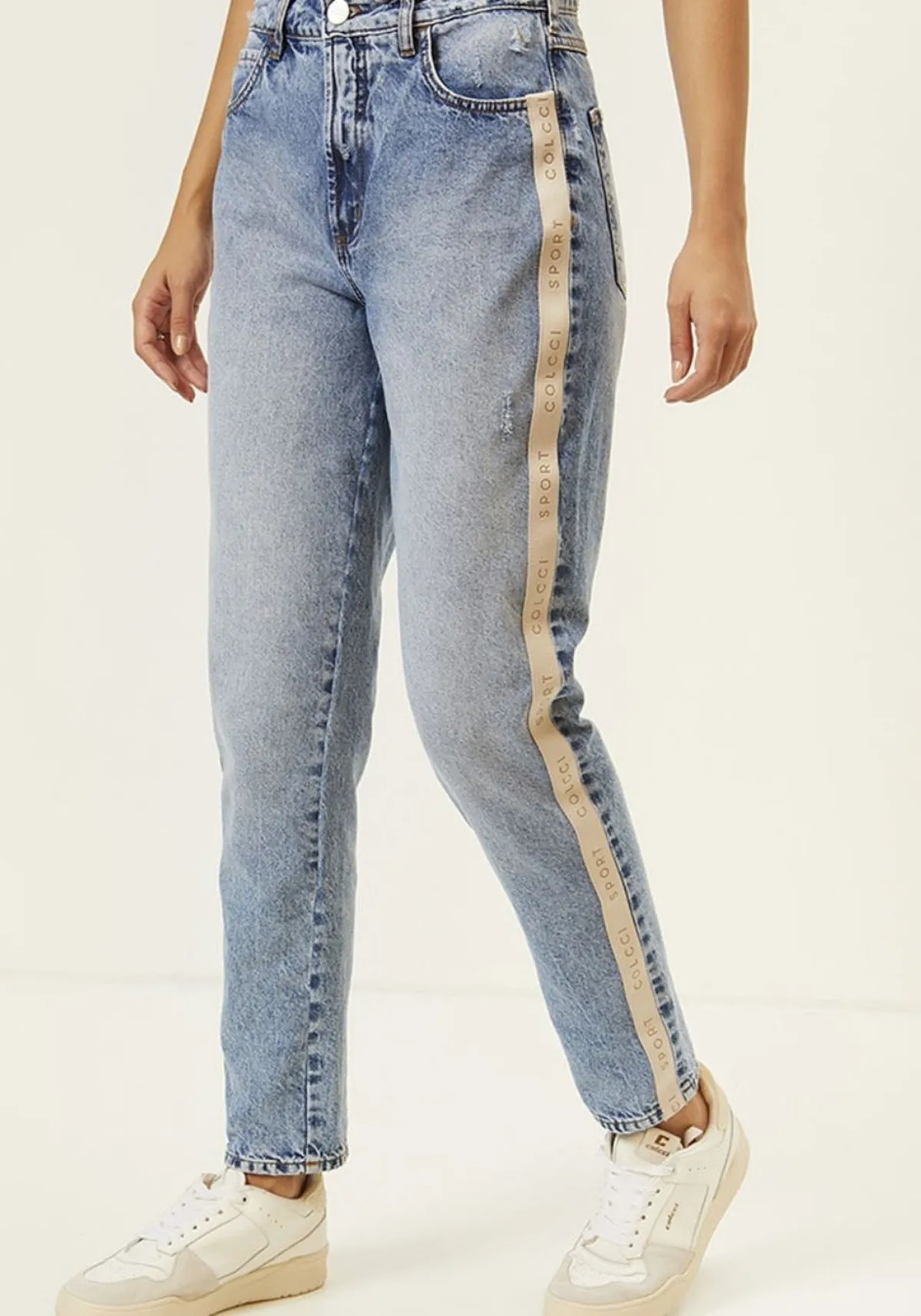 A calça apresenta shape reto e modelagem comfy. Detalhe de faixa com a logo em toda a lateral.