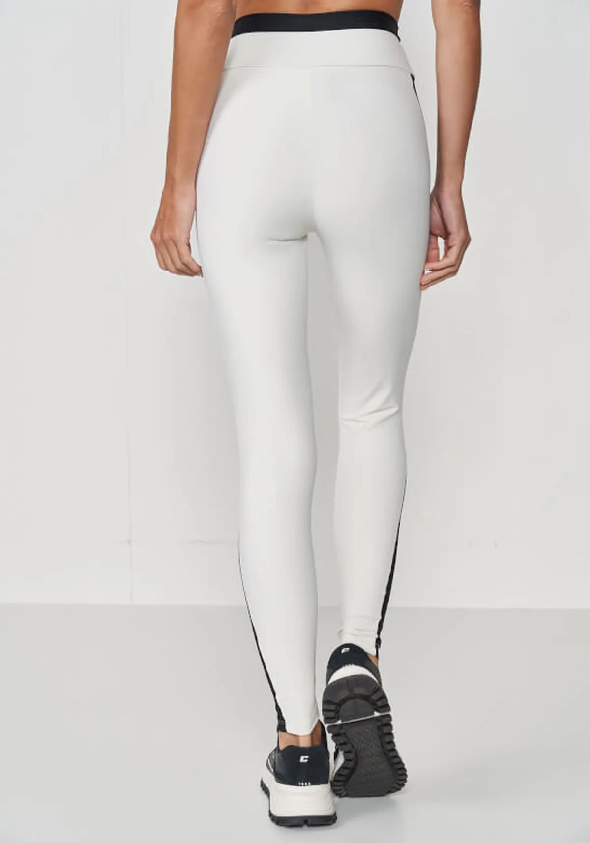 Calça legging bicolor, oferecendo suporte e conforto durante atividades físicas.