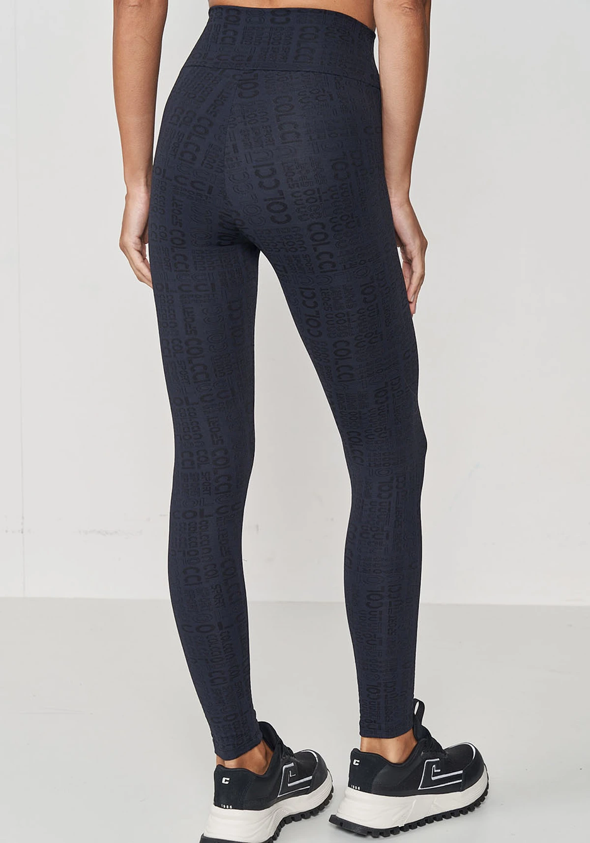 Calça legging jacquard com estampa, oferecendo suporte e conforto durante atividades físicas.