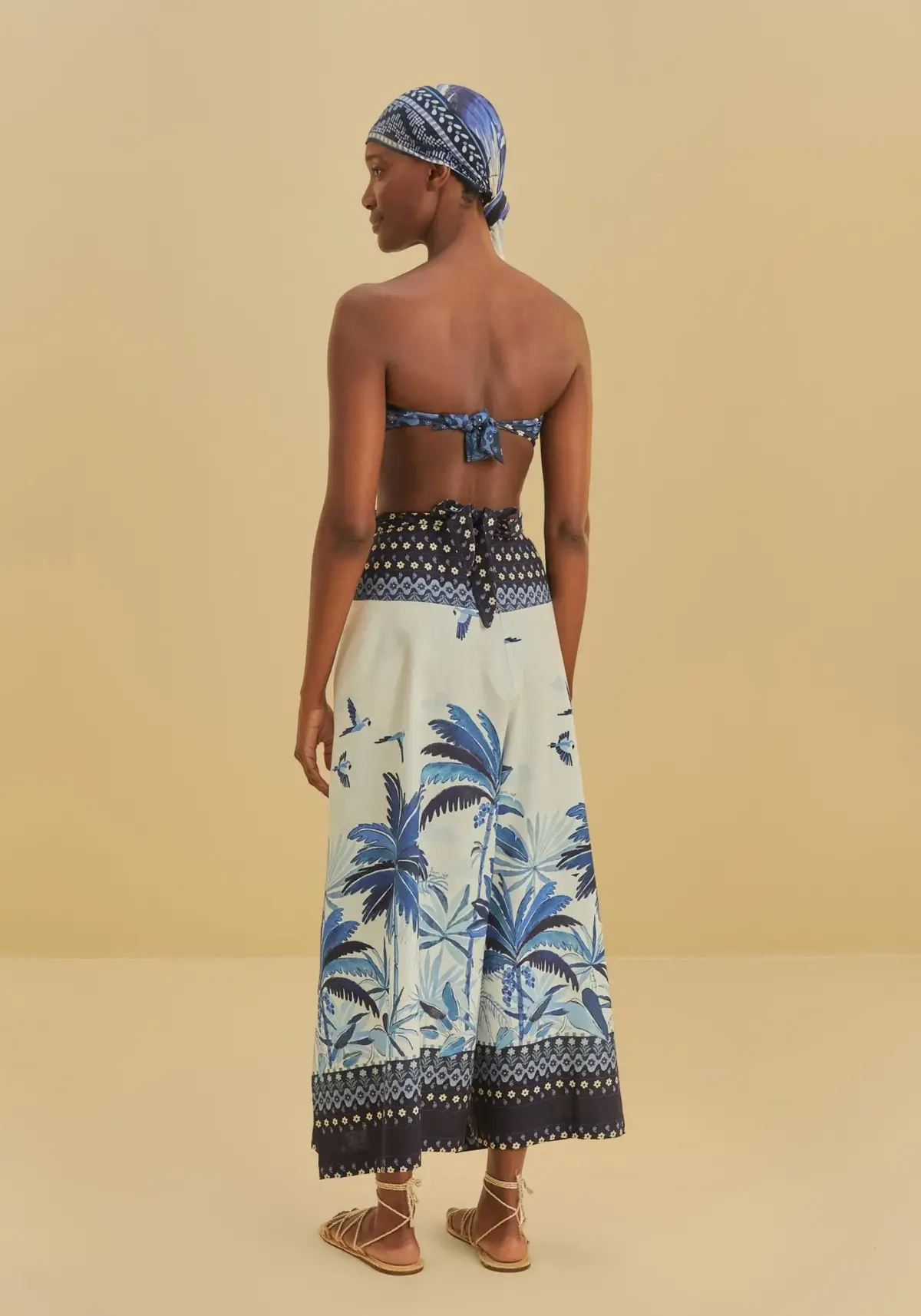 Uma interpretação do fenômeno da aurora boreal, mas com um toque tropical em tons de verde, azul e roxo, fluindo pelas pernas.