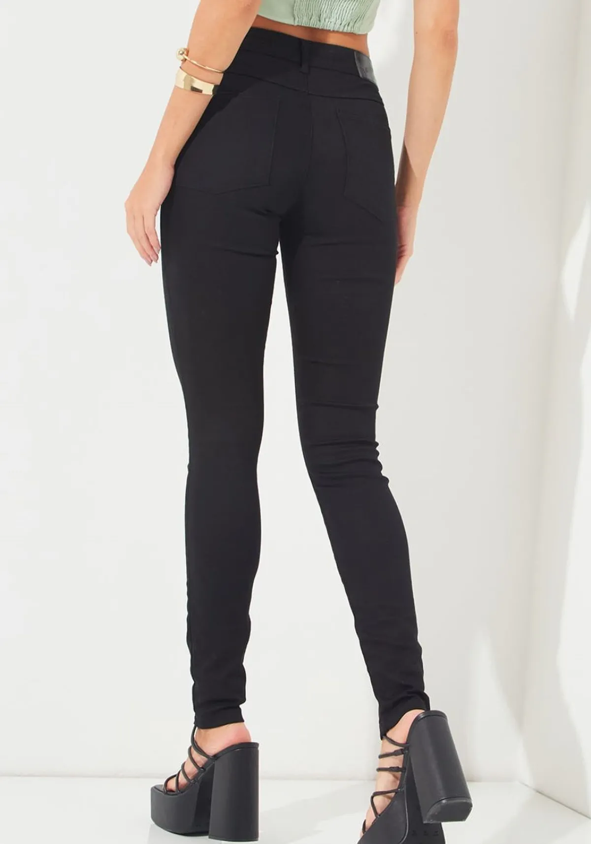 Calça sarja skinny, valoriza todo o corpo, proporciona um look mais moderno e confortável.