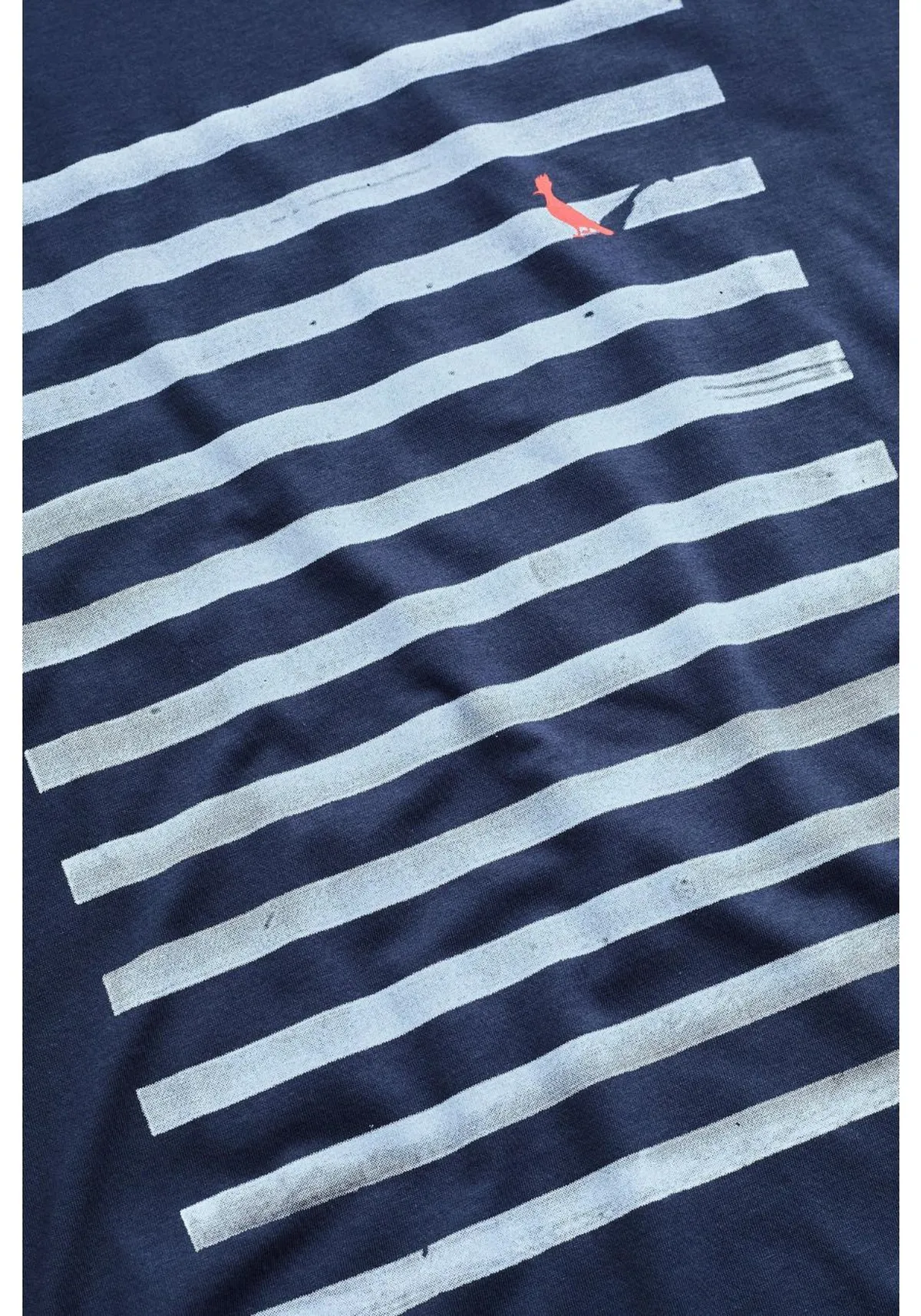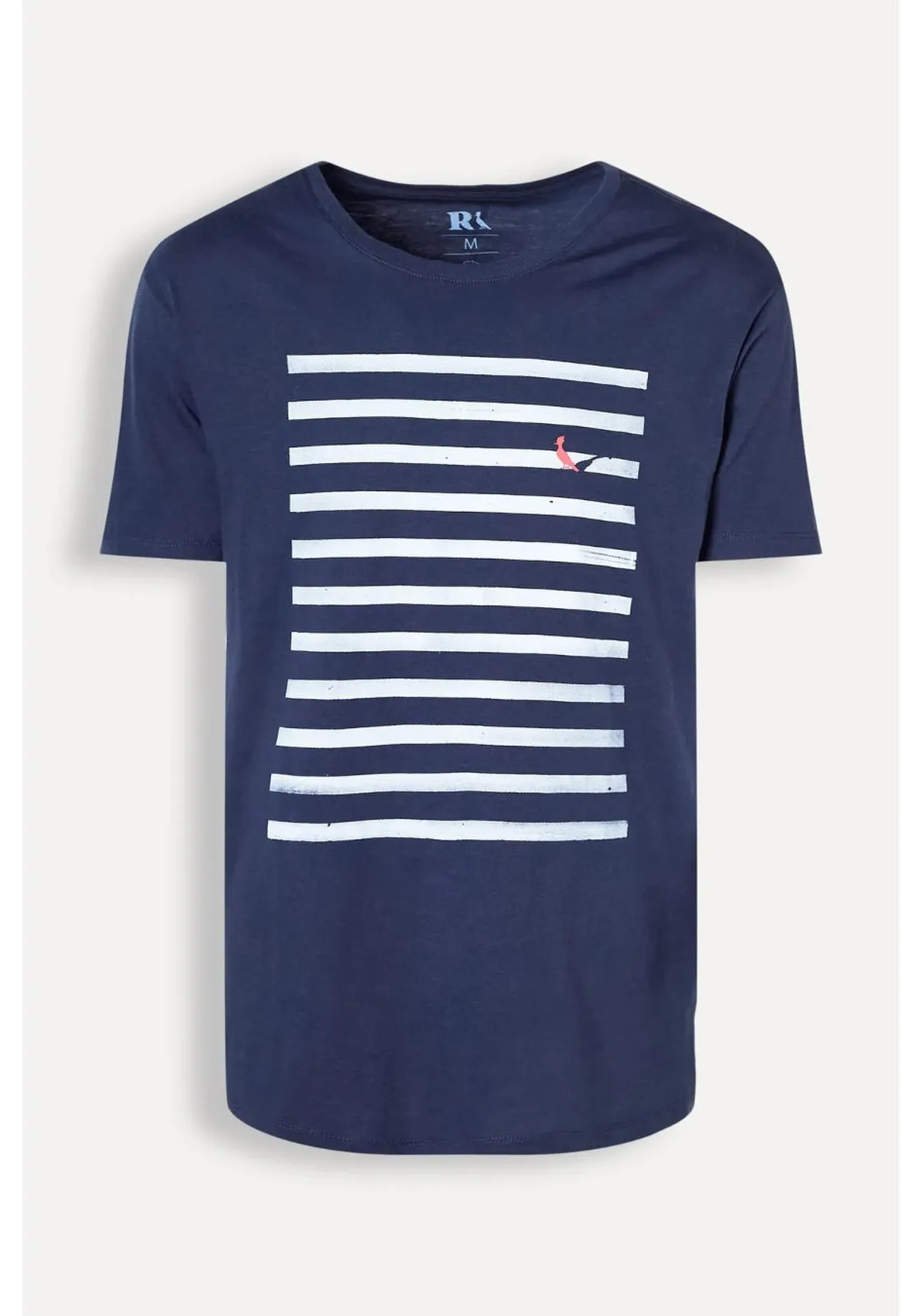 Camiseta estampada com faixas, uma proposta básica e versátil para usar sempre.