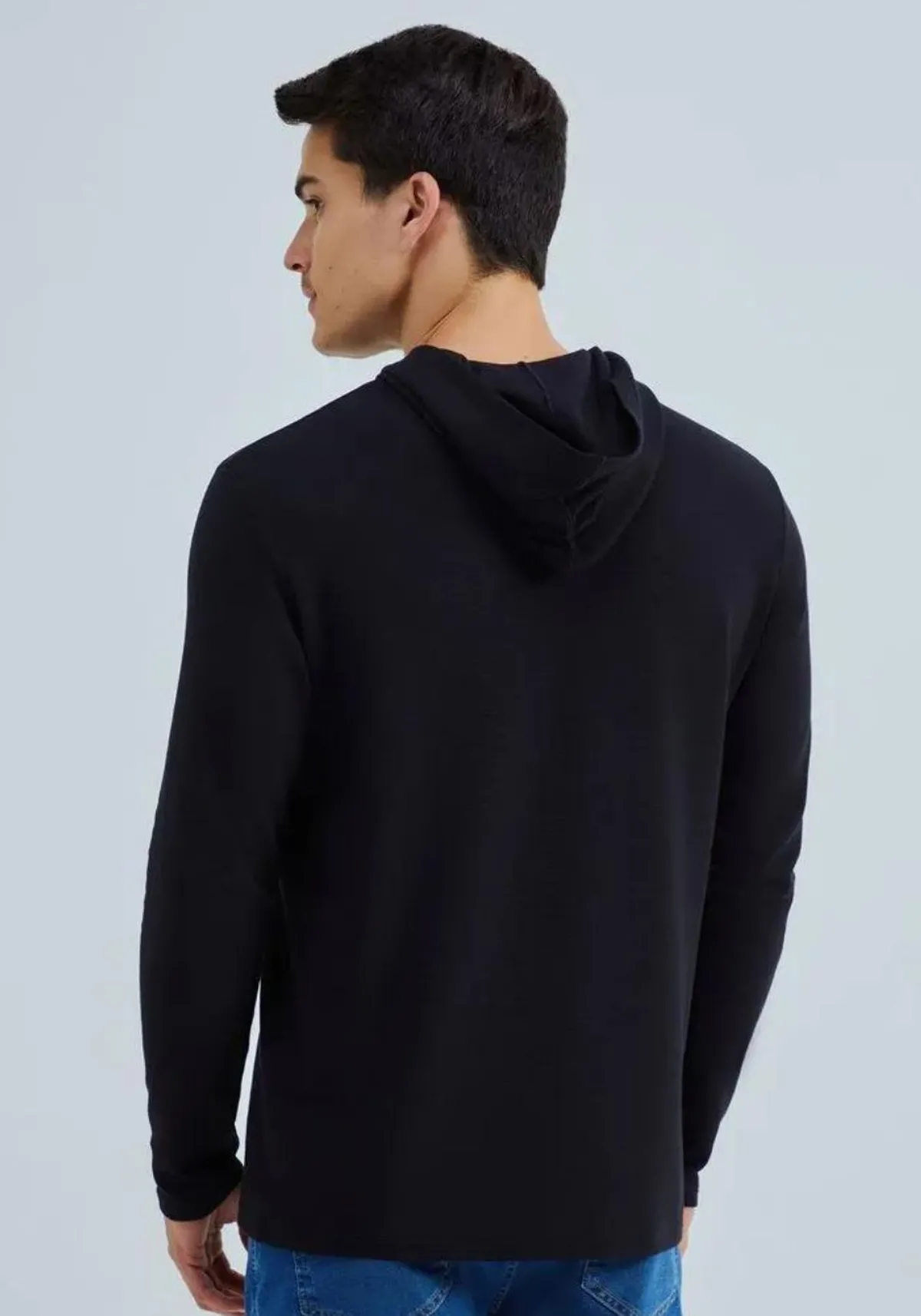 Camiseta masculina manga longa texturizada com capuz, uma fusão de estilo e conforto.