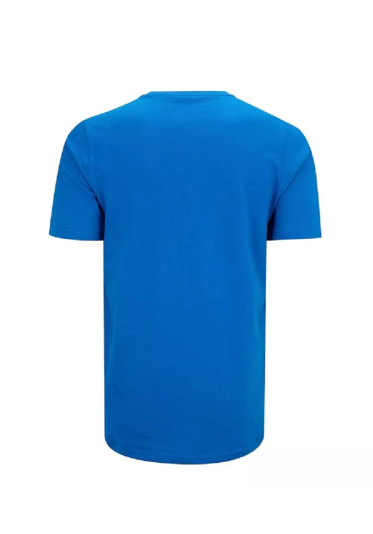 A camiseta apresenta modelagem regular, gola arredondada, mangas curtas, barra com acabamento simples, logo da marca no peito,