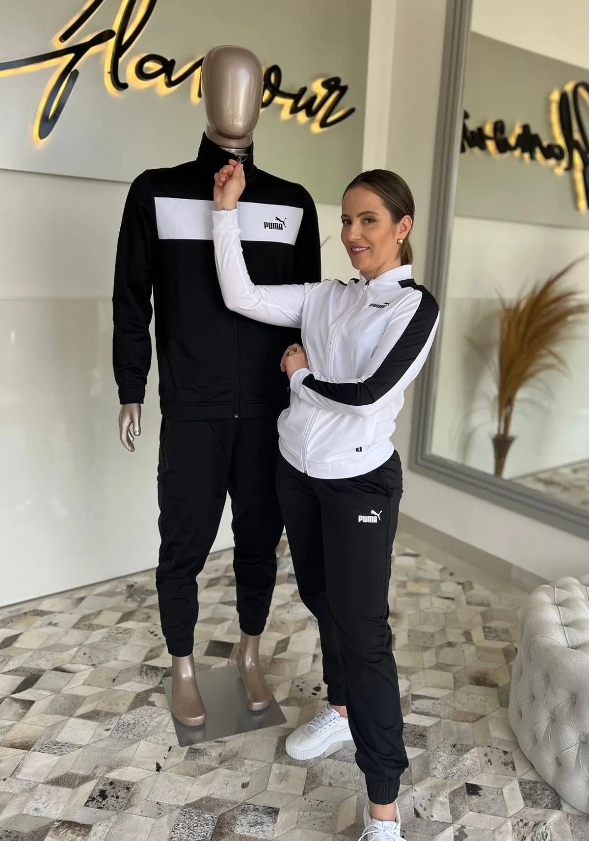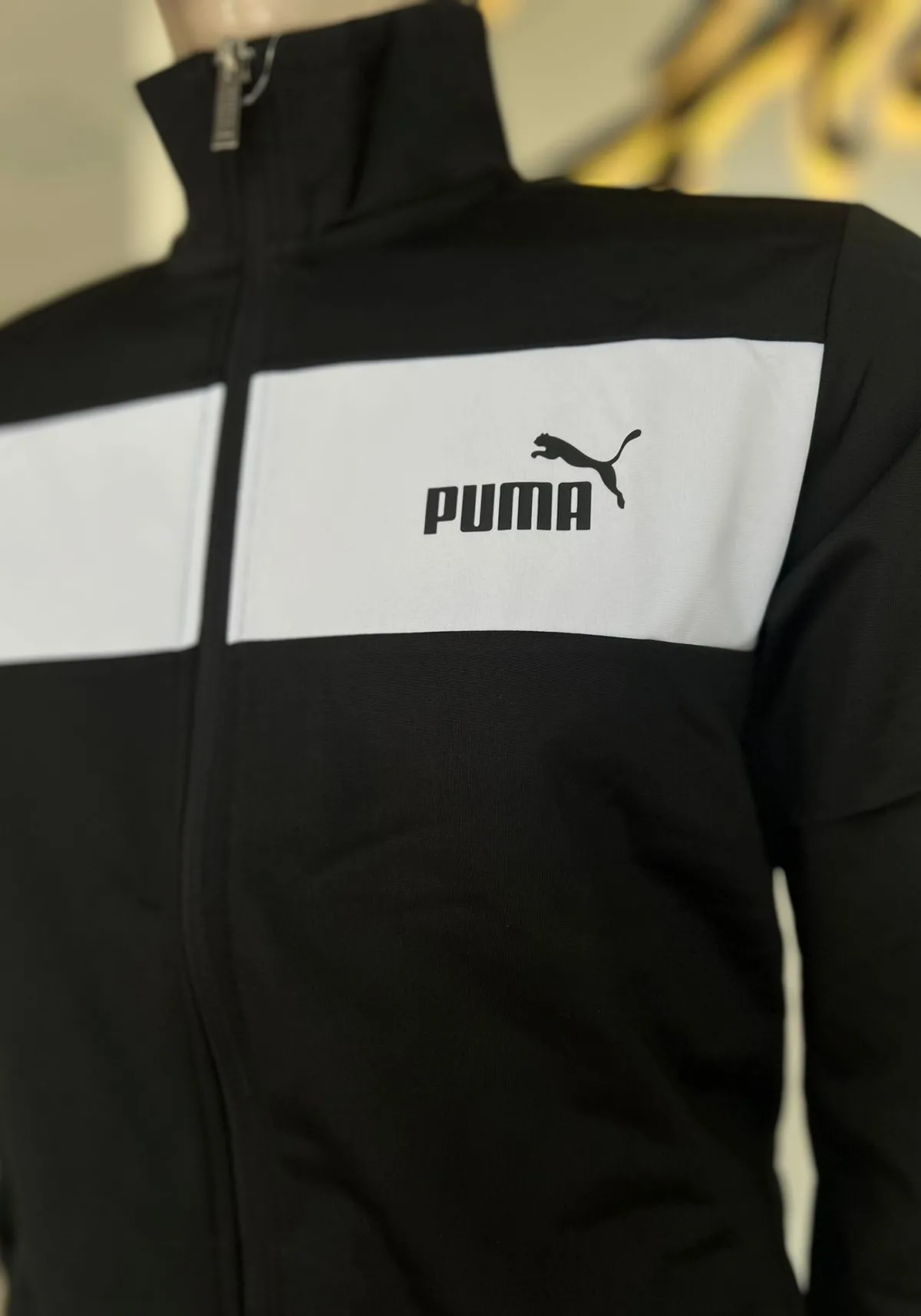 O painel esportivo com branding PUMA no peito e o logo PUMA na calça finalizam o look com perfeição.
