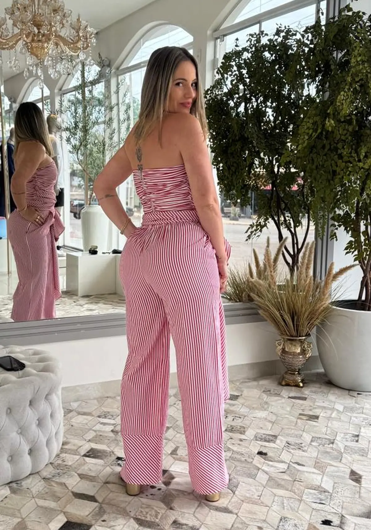 O Coordenado Top e Calça Carlota Costa Listrado Vermelho é a combinação perfeita entre elegância e descontração. O conjunto apresenta estampa listrada em tons vibrantes de vermelho e branco, que adiciona um toque moderno e cheio de personalidade ao visual.
