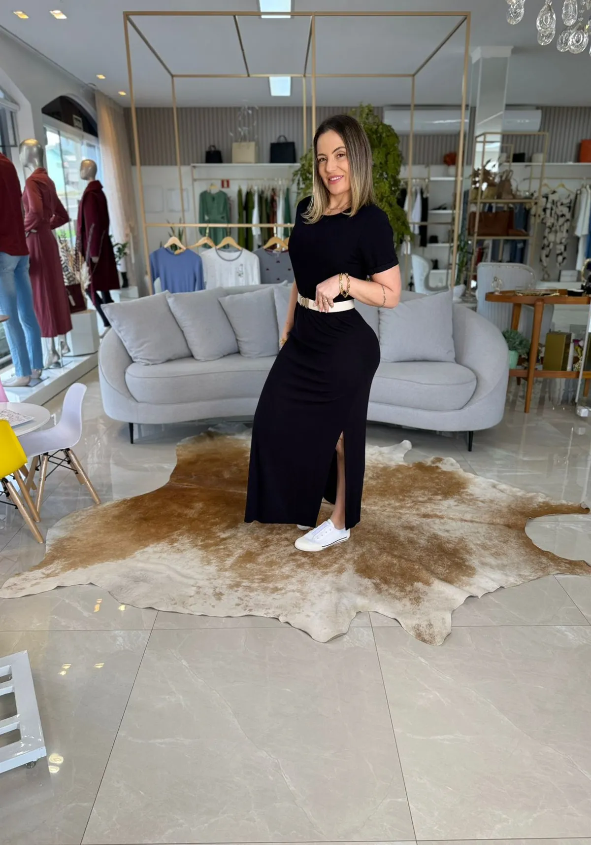 O Vestido Sommer Preto é a peça-chave para quem busca um visual moderno, versátil e cheio de atitude. Com design minimalista e corte bem estruturado, ele se adapta facilmente a diferentes ocasiões — do casual ao elegante — com um simples jogo de acessórios.
