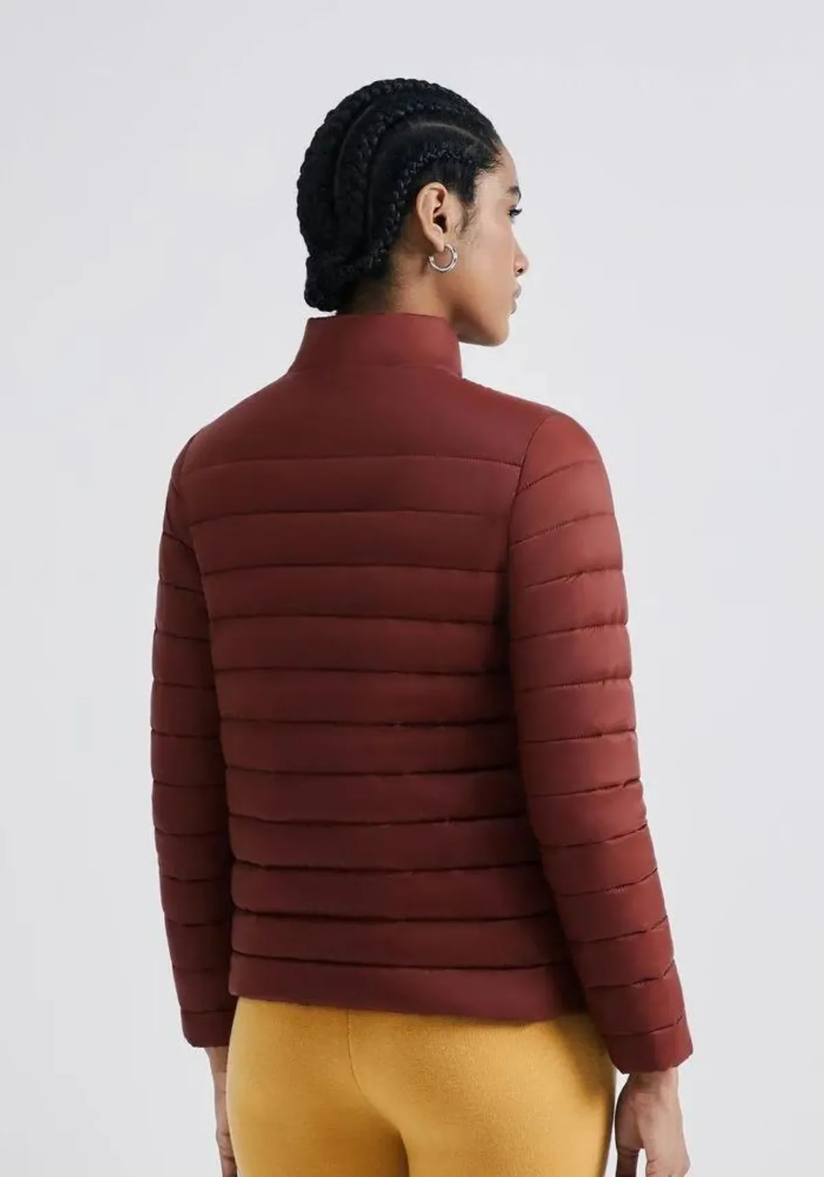 Jaqueta básica puffer oferecendo conforto térmico, além de charme e estilo único.