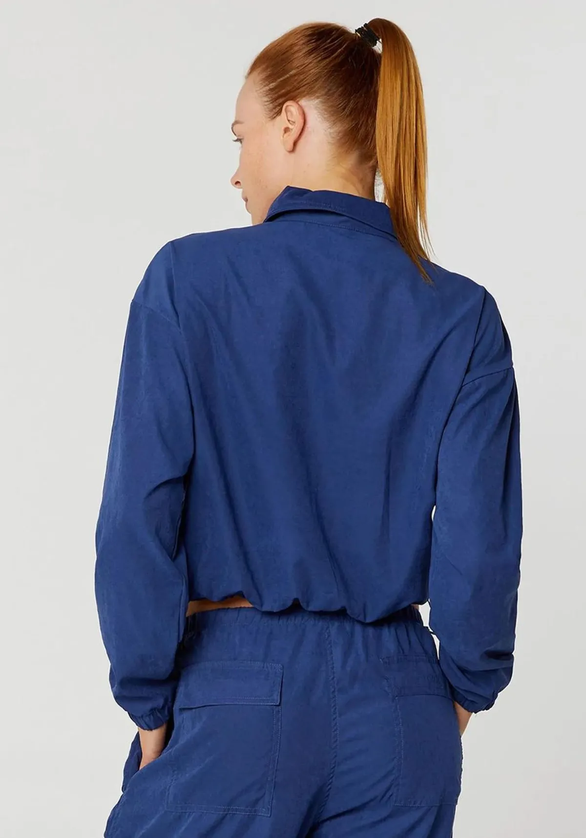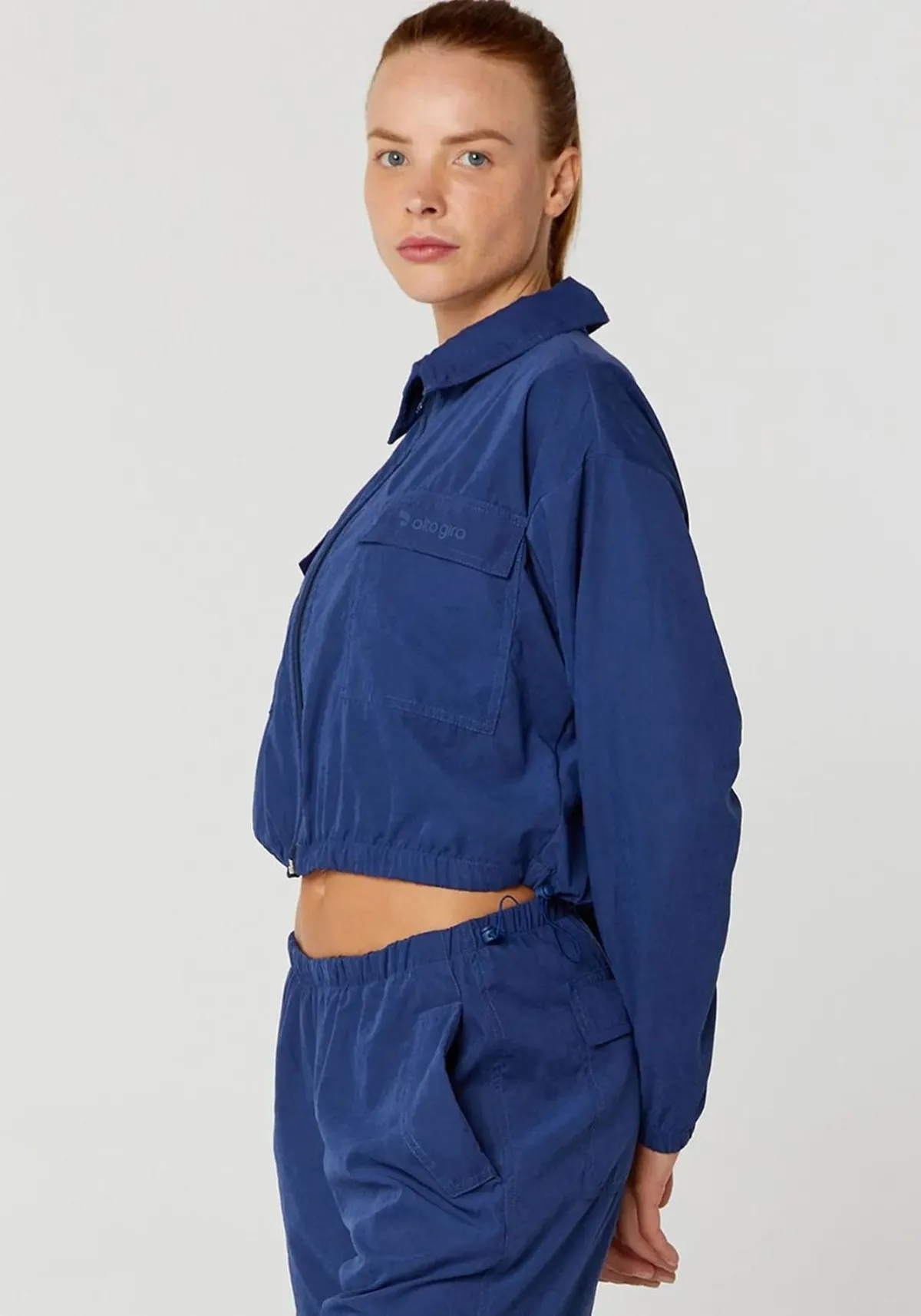 Jaqueta Cropped. Abertura frontal com zíper de puxador duplo que possibilita a abertura e o fechamento debaixo para cima e de cima para baixo.