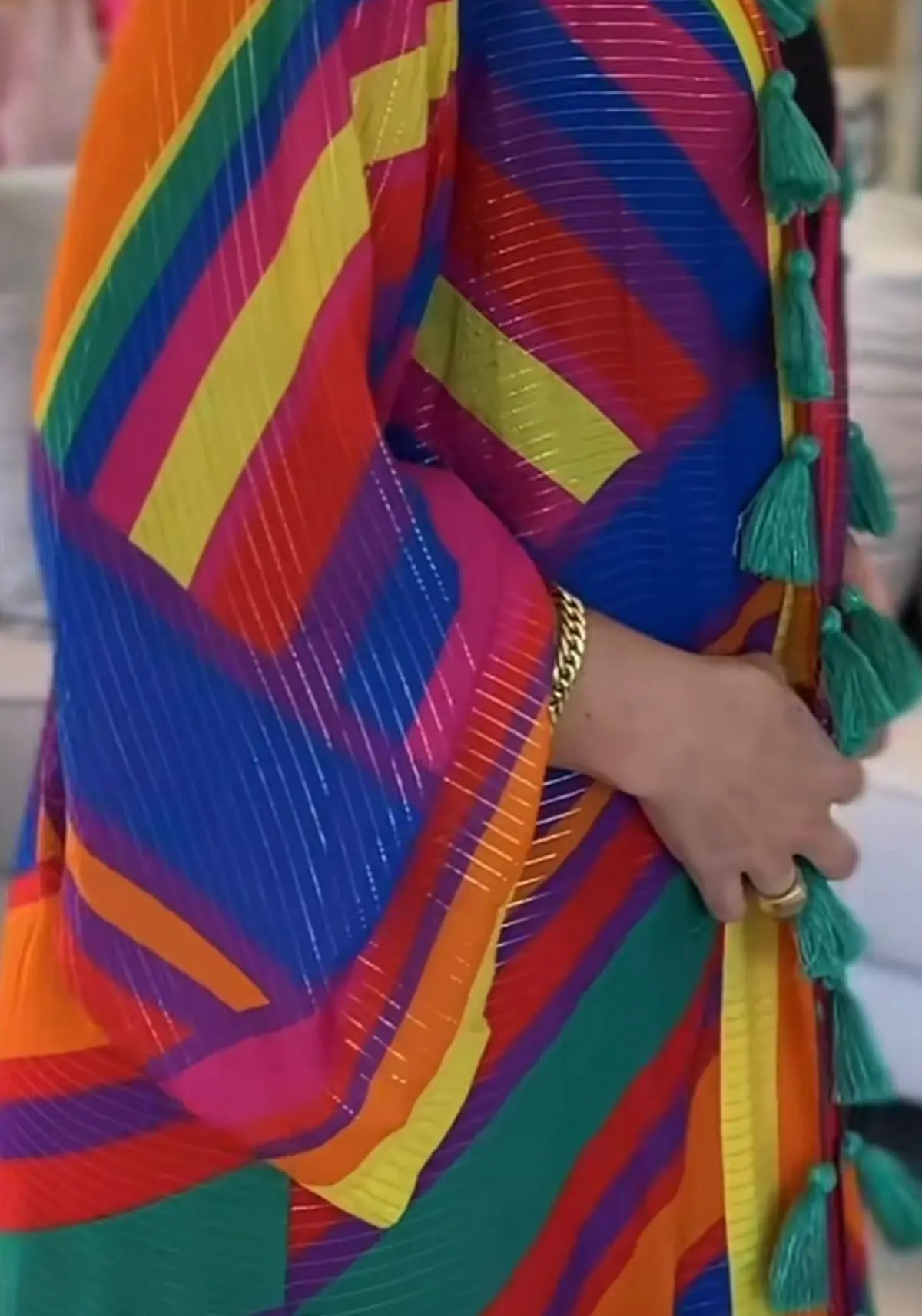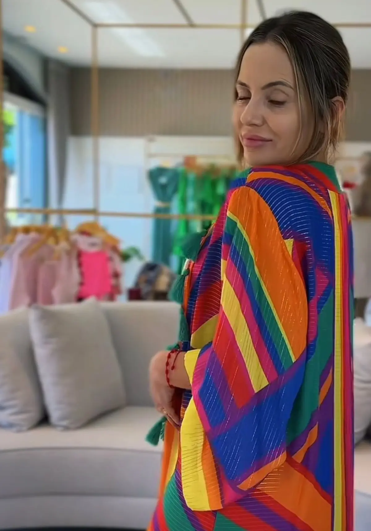 As cores das listras podem variar entre tons quentes e frios, criando um visual dinâmico e alegre. Além disso, o corte amplo e as mangas largas conferem um estilo descontraído e boho chic, perfeito para sobrepor em looks casuais, como com calças jeans, shorts ou até vestidos leves.