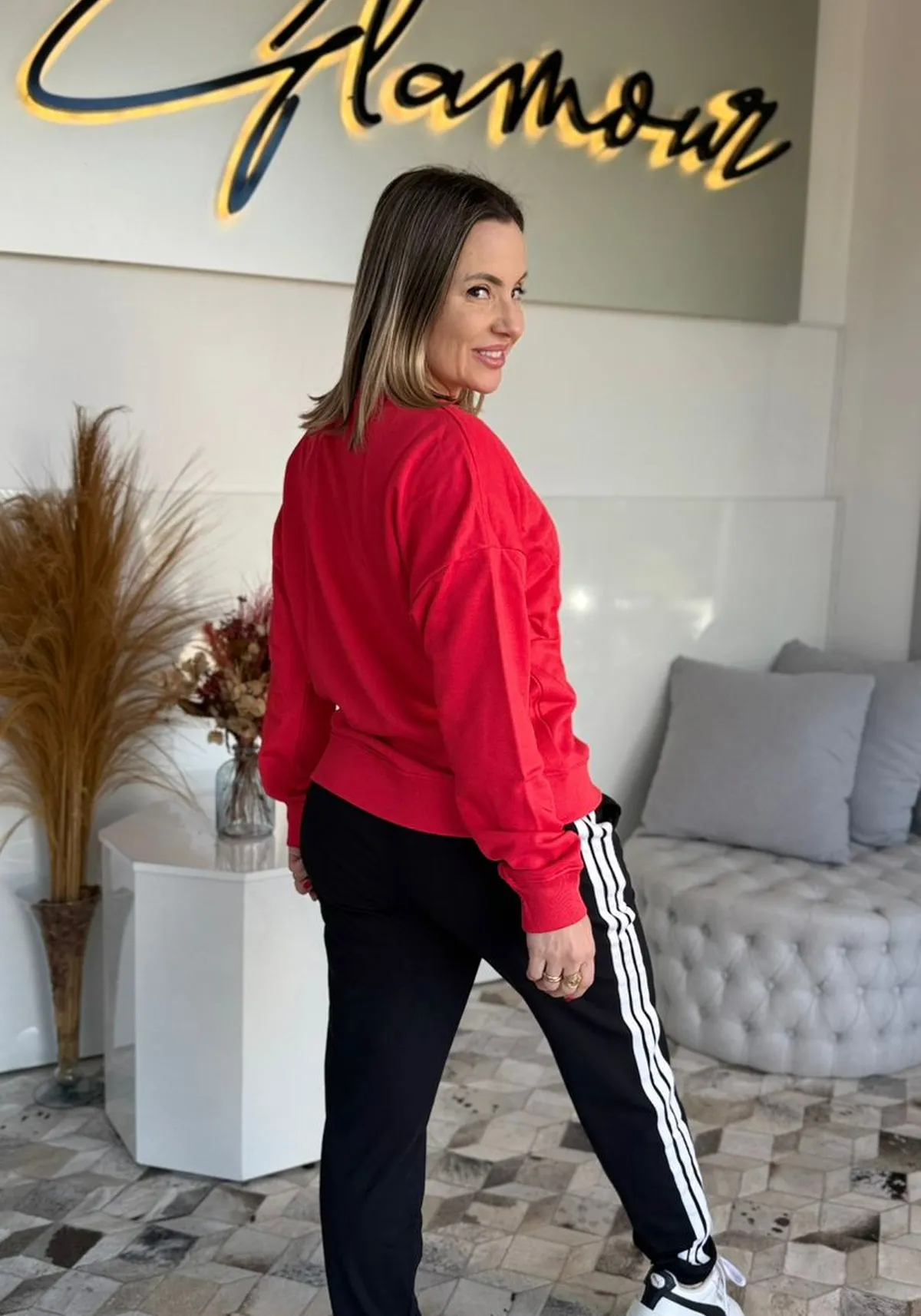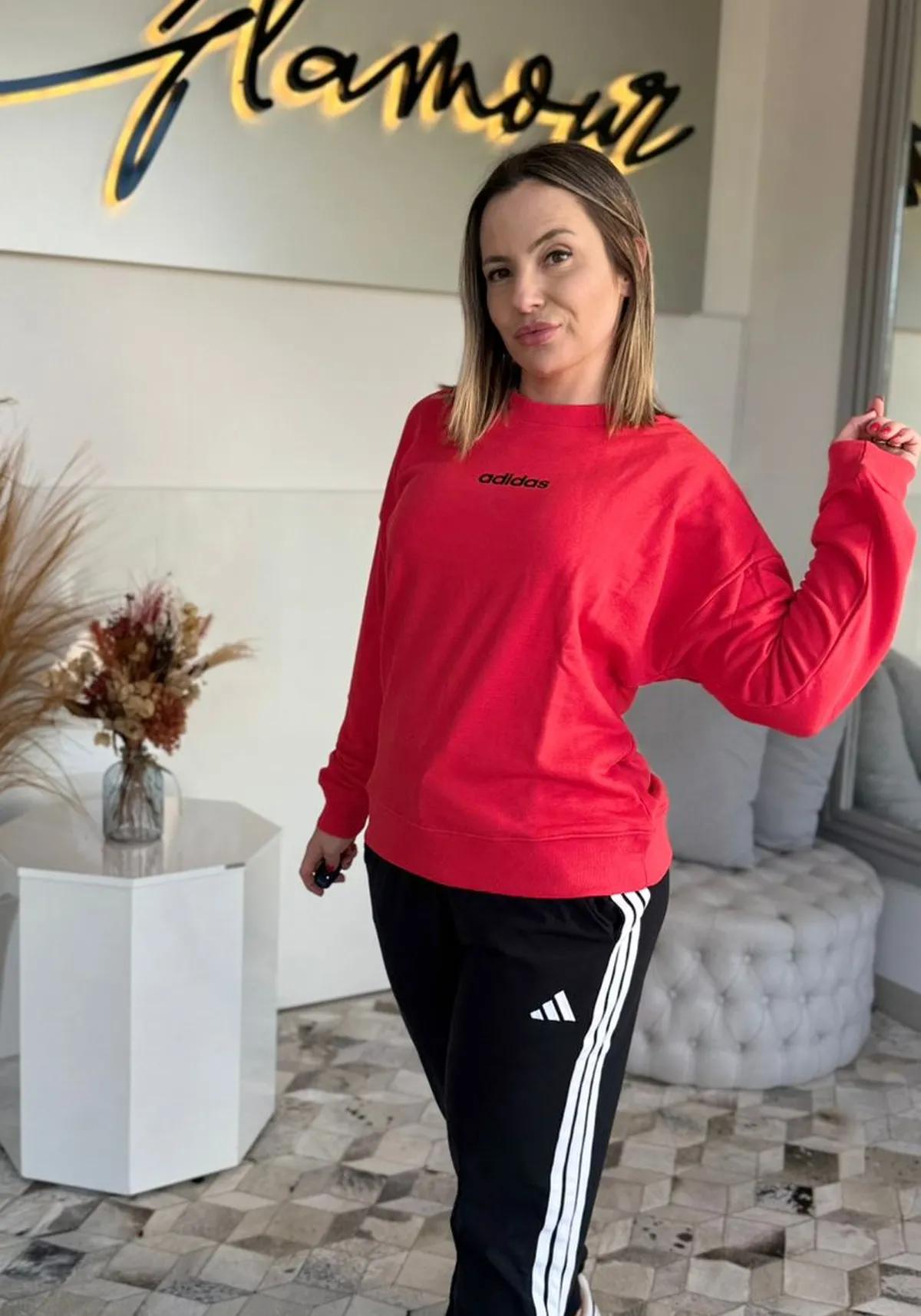 O Moletom Logo Linear Vermelho é a peça ideal para quem busca estilo marcante com o conforto do streetwear esportivo. Com design minimalista e moderno, o destaque fica por conta do logo Adidas em formato linear no peito, que traz identidade e atitude ao visual.