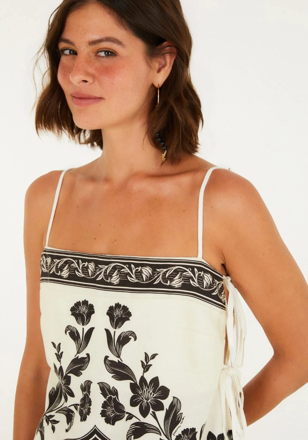 Leve e cheia de bossa, a Regata Amarrações Guanascaste é perfeita para looks descomplicados e estilosos. Confeccionada em tecido fluido, traz estampa exclusiva da Farm que celebra a natureza em cores vibrantes. O destaque fica por conta das amarrações frontais, que adicionam charme e permitem ajustar o caimento de forma moderna e feminina.