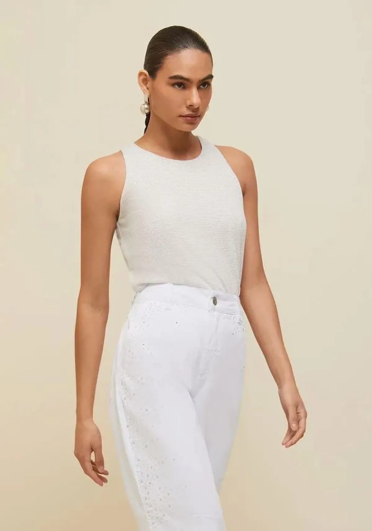 Regata em tecido prata, uma regata diferenciada e moderna garantindo muito estilo.