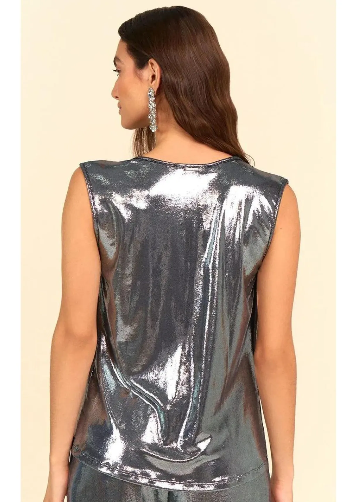 Seu tecido metalizado trás total modernidade a regata, sendo uma peça de alta qualidade e conforto excepcional, proporcionando uma sensação agradável e delicada na pele, com vantagem de não amassar e não precisar passar o ferro.