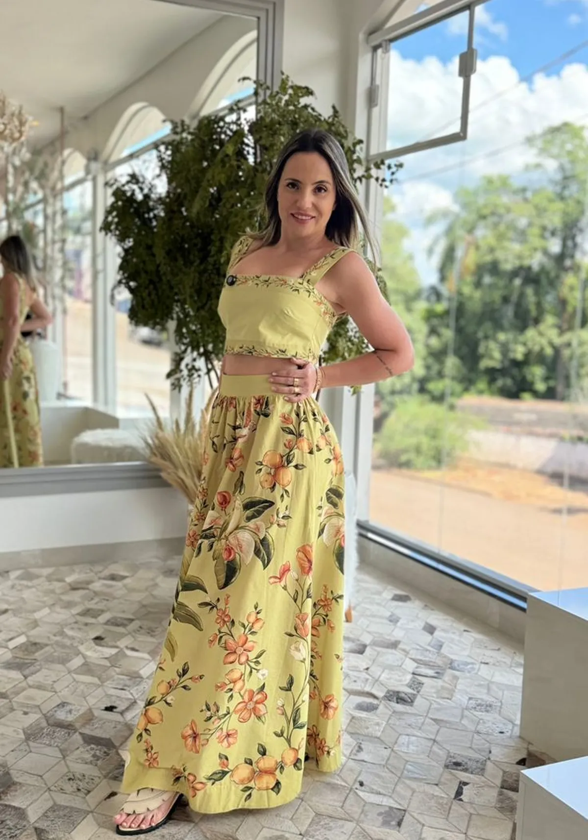 Cheia de charme e feminilidade, a saia evasê da Farm aposta na estampa exclusiva Bosque Chic, que mistura cores e elementos inspirados na natureza com autenticidade. A modelagem evasê garante movimento fluido e leveza, enquanto o cós ajustado valoriza a cintura com delicadeza. Uma peça versátil que transita entre looks casuais e produções mais sofisticadas.