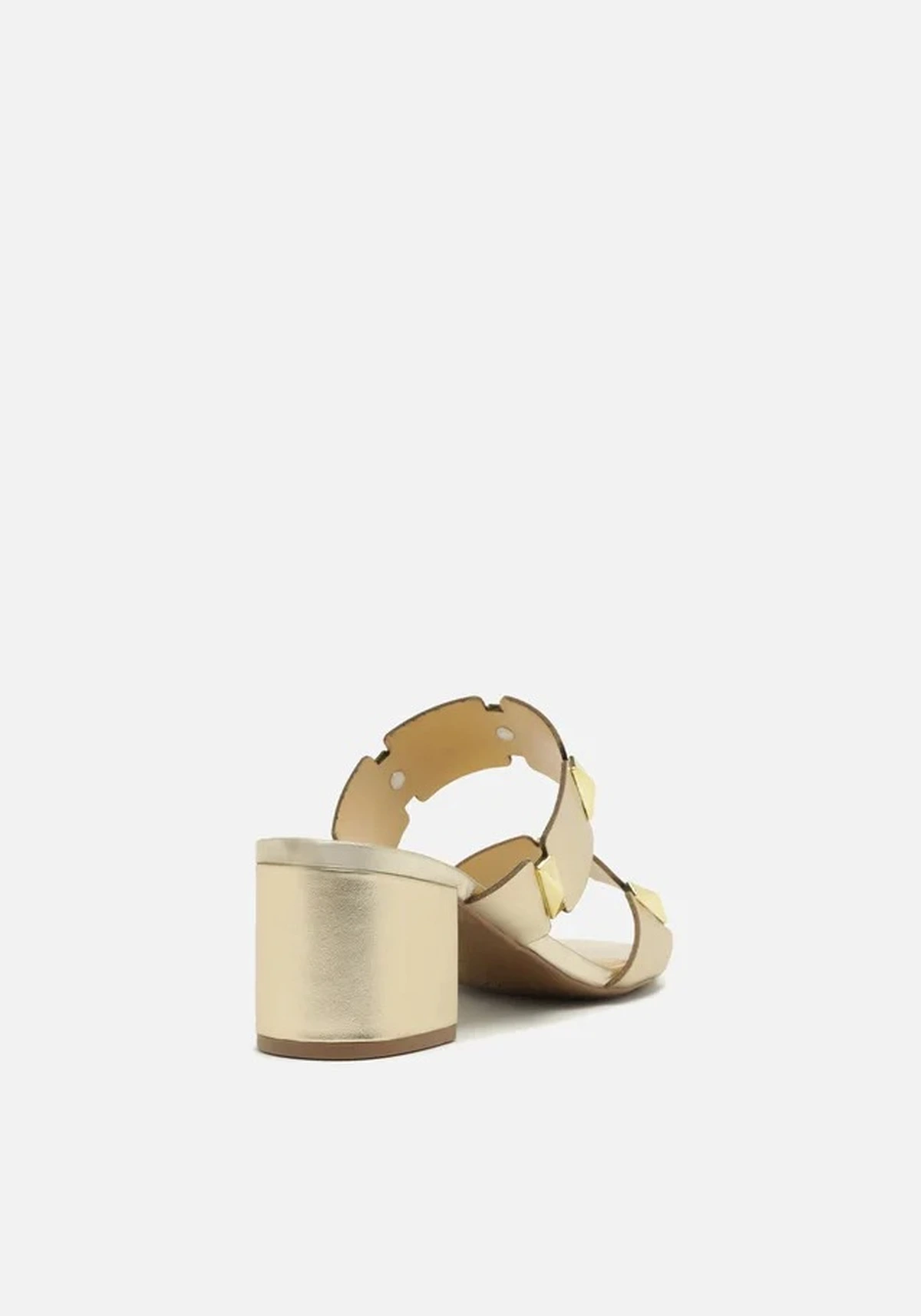 O salto médio proporciona estabilidade e conforto, enquanto as tiras delicadas valorizam os pés com feminilidade e charme.