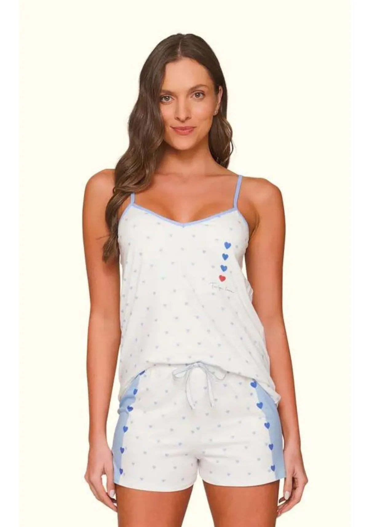 Conjunto de pijama composto por uma regata e um short, em malha com toque de pêssego.