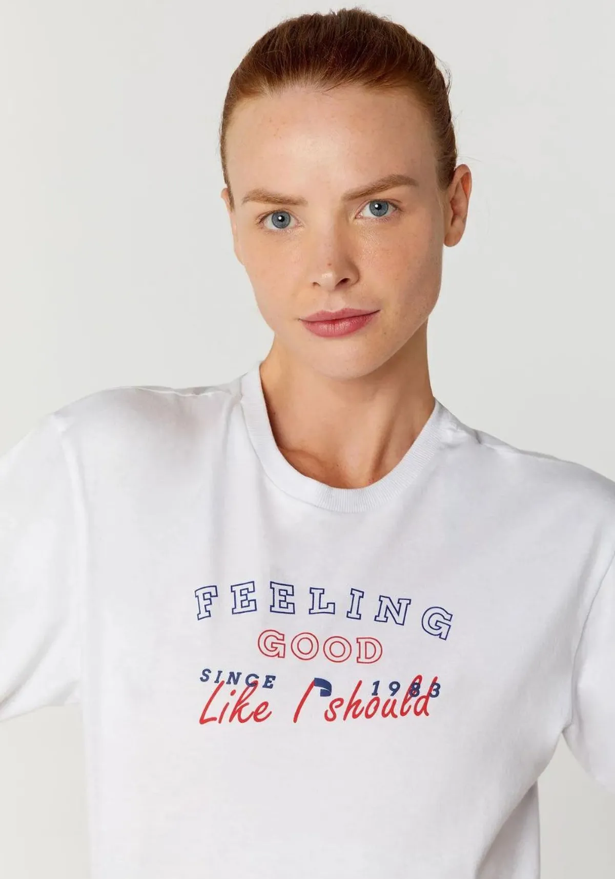 É confeccionada em tecido de algodão sustentável com acabamento aveludado e toque pele de pêssego.