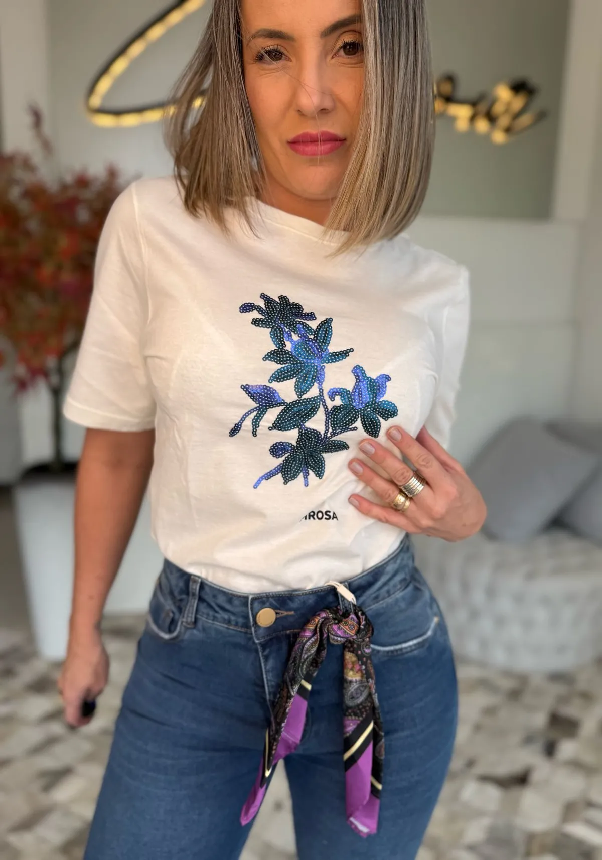T-shirt com detalhe de estampa em paetê, a escolha ideal para o dia a dia com modernidade e versatilidade.