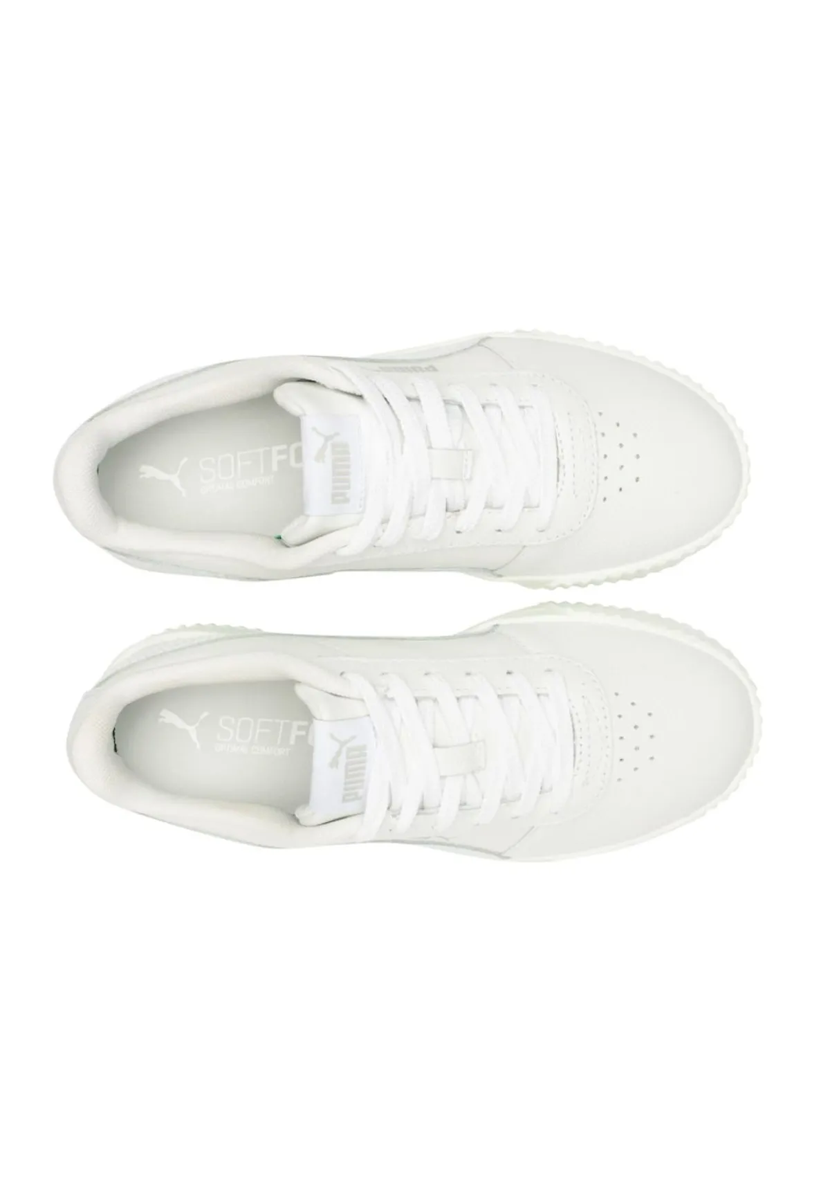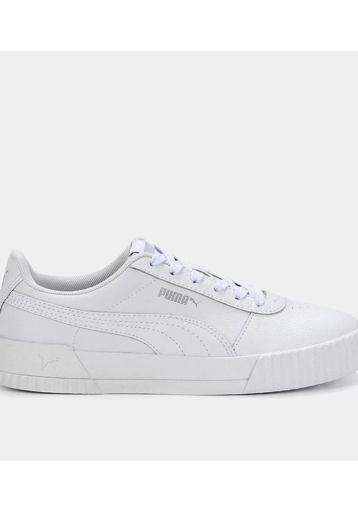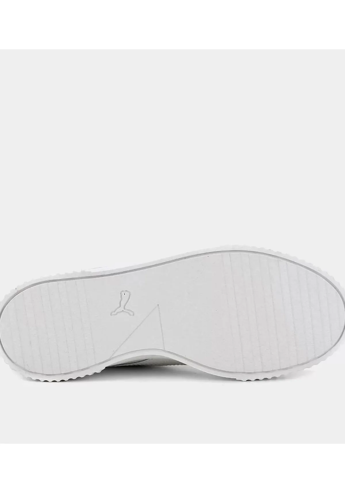 Seu design é de cor totalmente branca, e traz apenas pequenos detalhes, como o logo Puma Cat, em cor prata.