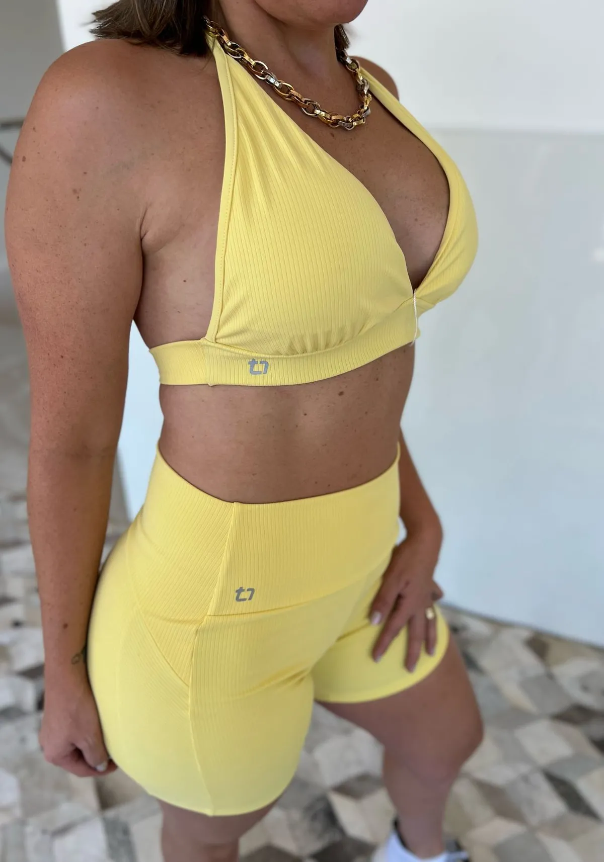Confeccionado em tecido canelado que proporciona boa sustentação e conforto.