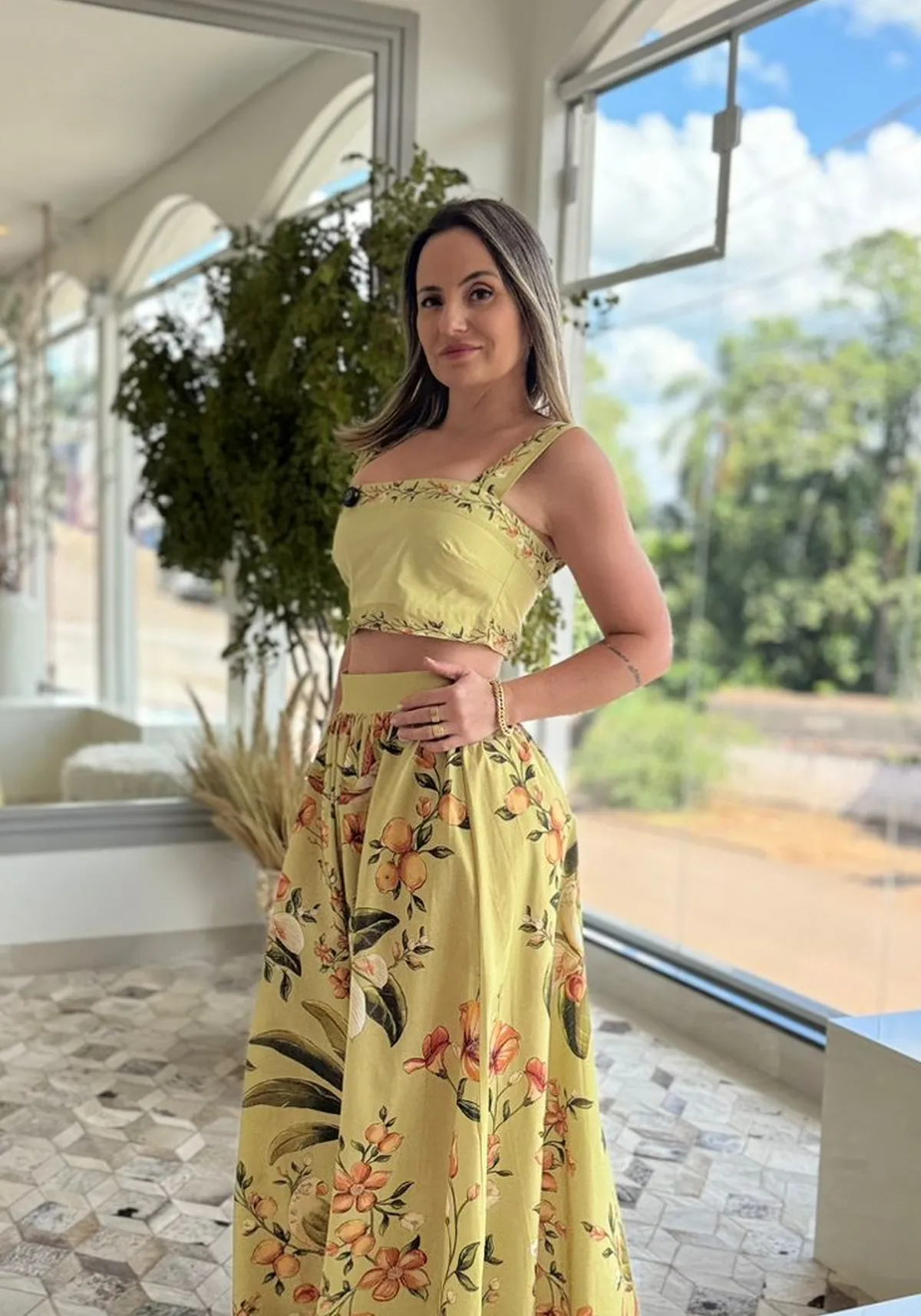 Estilo natural com toque fashion. O Top Bosque Chic da Farm traz uma estampa vibrante inspirada na beleza da natureza, combinada a uma modelagem moderna e cheia de bossa. Com caimento leve e estrutura delicada, é perfeito para compor produções frescas e estilosas nos dias de sol.