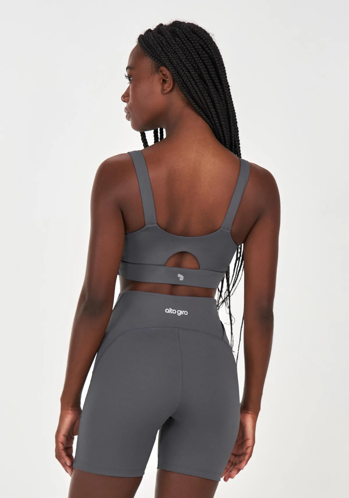 Top fitness com bolso e recorte, um top cheio de estilo para seus treinos com mais conforto e confiança.