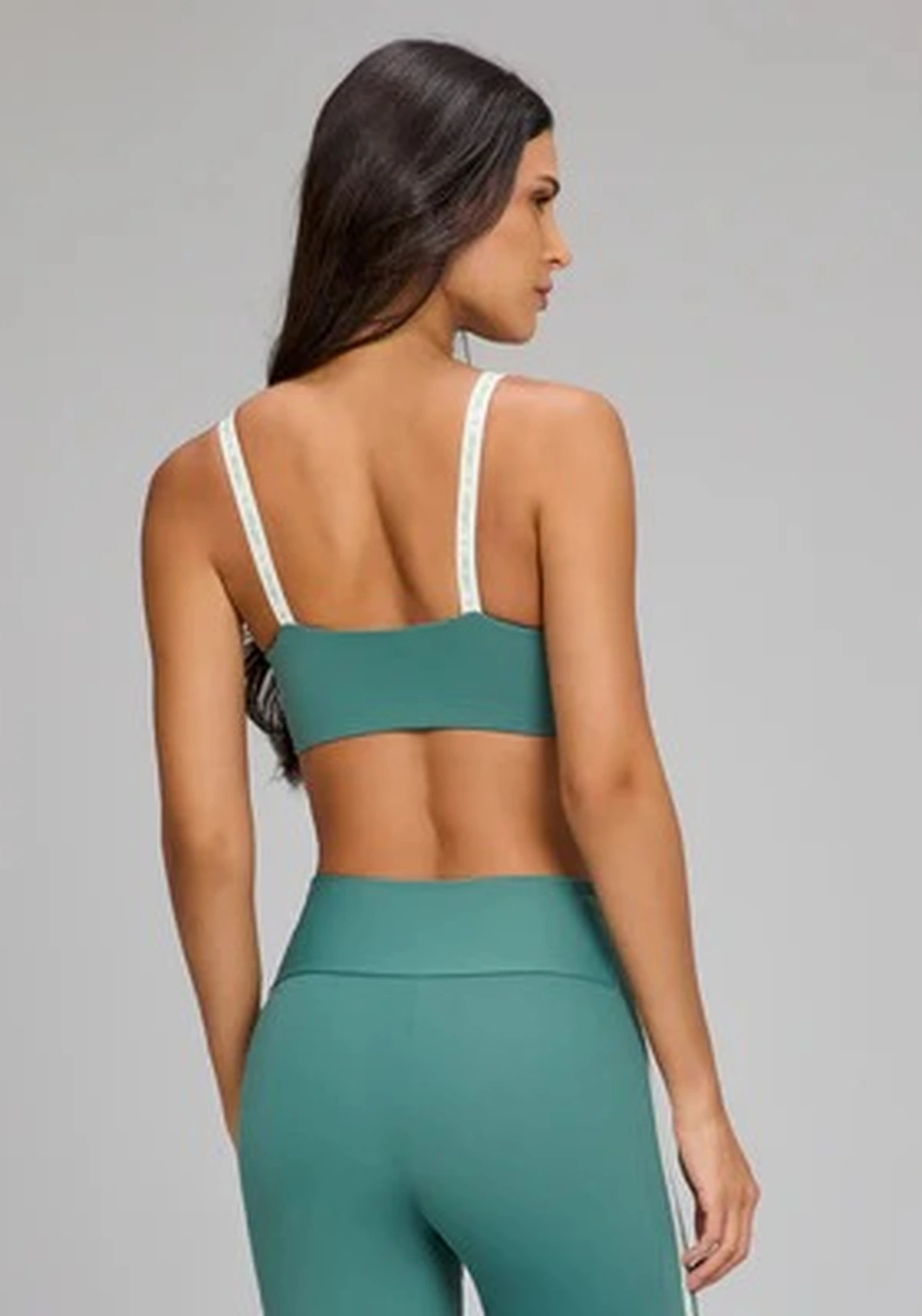 A cor verde cálido destaca o visual com uma pegada moderna e vibrante, ideal para quem gosta de peças com personalidade. Confeccionado em tecido de alta tecnologia, o top oferece suporte leve, ótima elasticidade e toque macio.