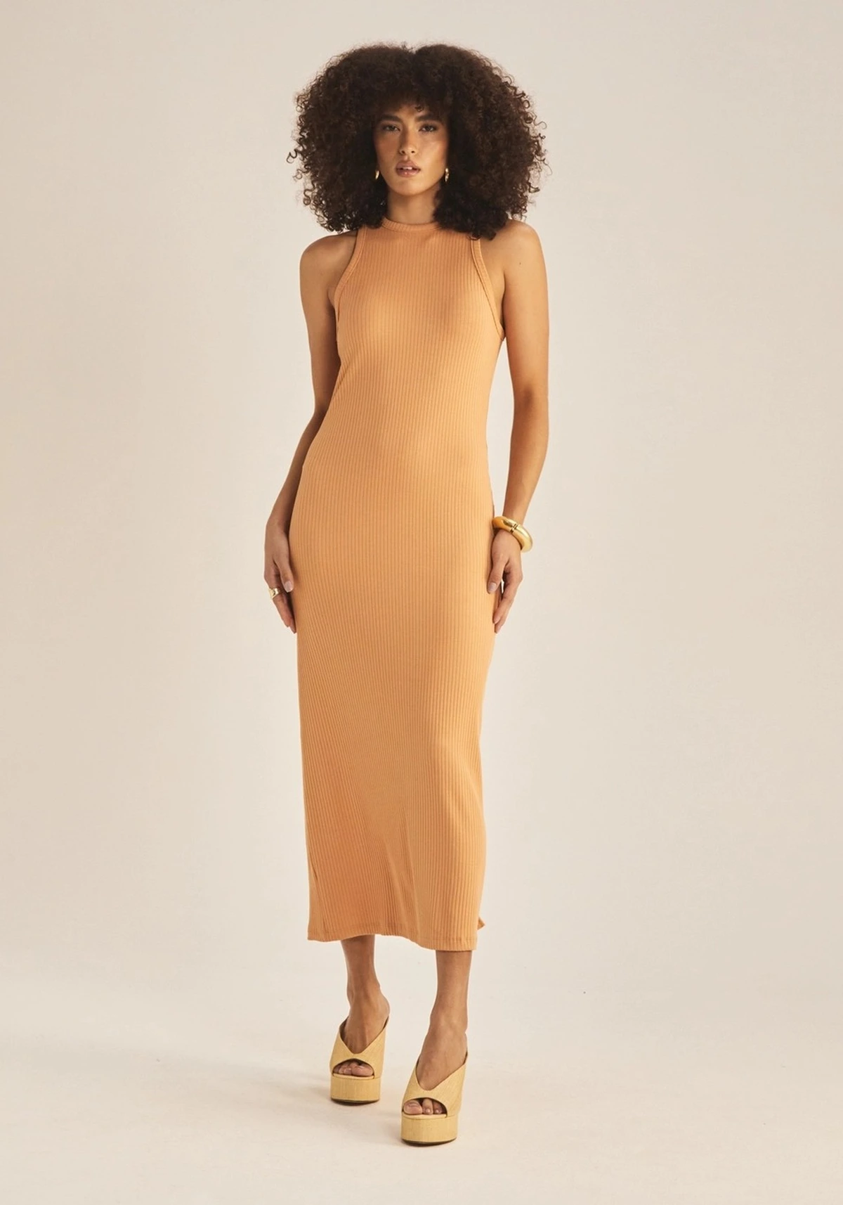 Moderno e feminino, o vestido canelado aposta na modelagem ajustada para valorizar a silhueta com praticidade e estilo. Confeccionado em malha canelada, oferece elasticidade e conforto ao vestir, além de caimento impecável. O tom bege nude é sofisticado e versátil, perfeito para combinações elegantes do dia a dia até produções mais elaboradas.