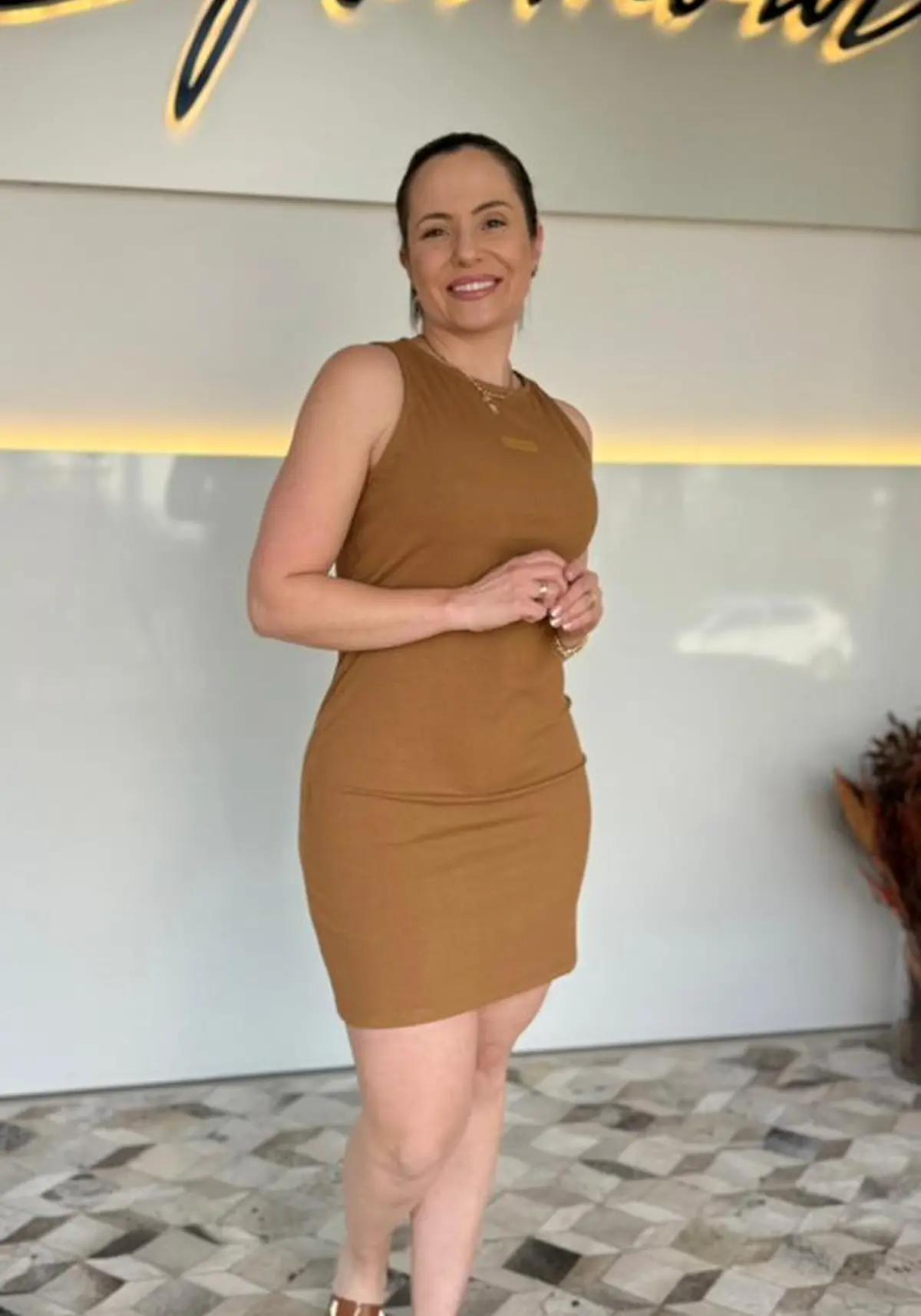 Sofisticação minimalista com toque contemporâneo. O Vestido Canelado Marrom Sommer apresenta modelagem ajustada ao corpo, realçando a silhueta com conforto graças à elasticidade natural do tecido canelado.