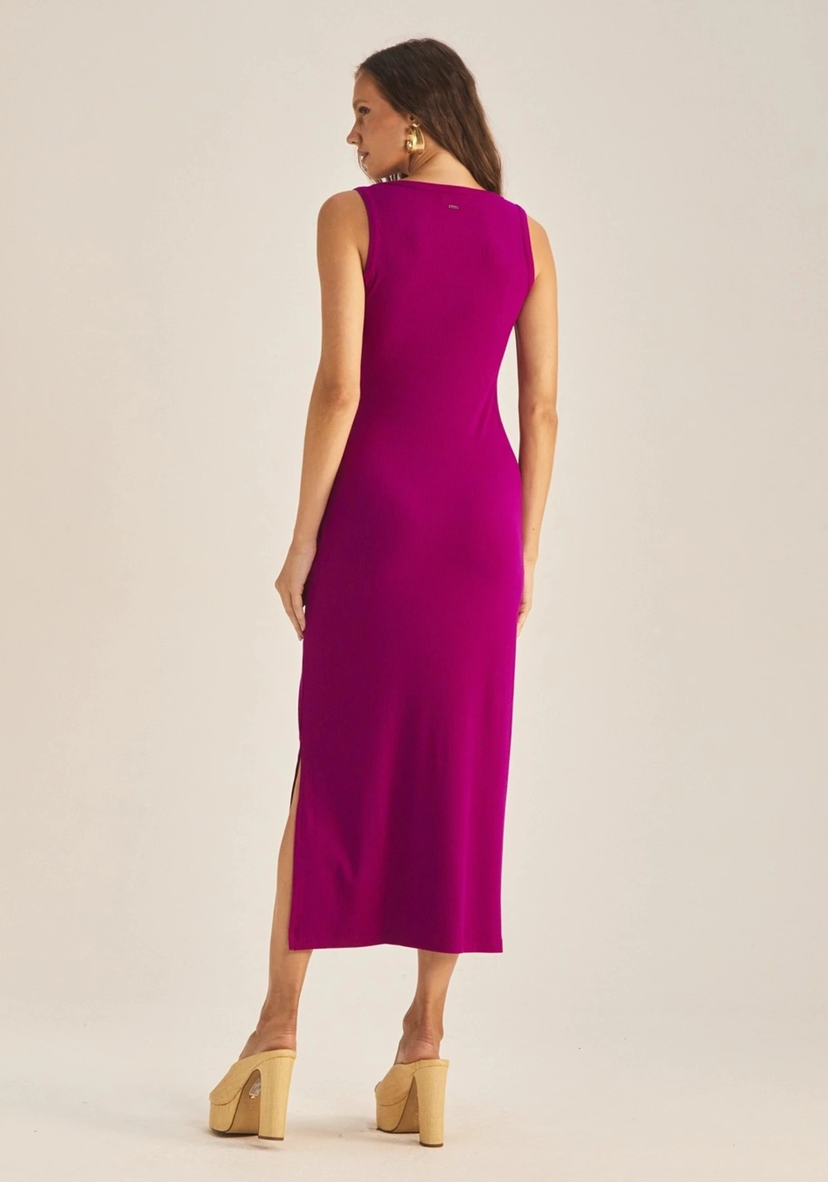 Cheio de atitude e estilo, o vestido Sommer em malha canelada valoriza a silhueta com sua modelagem ajustada e confortável. O tom roxo Strong adiciona personalidade e modernidade ao visual, tornando a peça destaque em qualquer ocasião. Confeccionado em tecido elástico e macio, garante caimento impecável e liberdade de movimentos, ideal para produções urbanas e casuais.