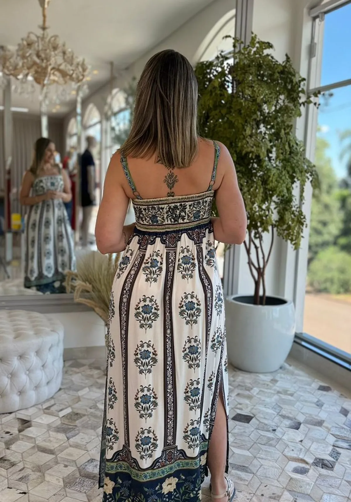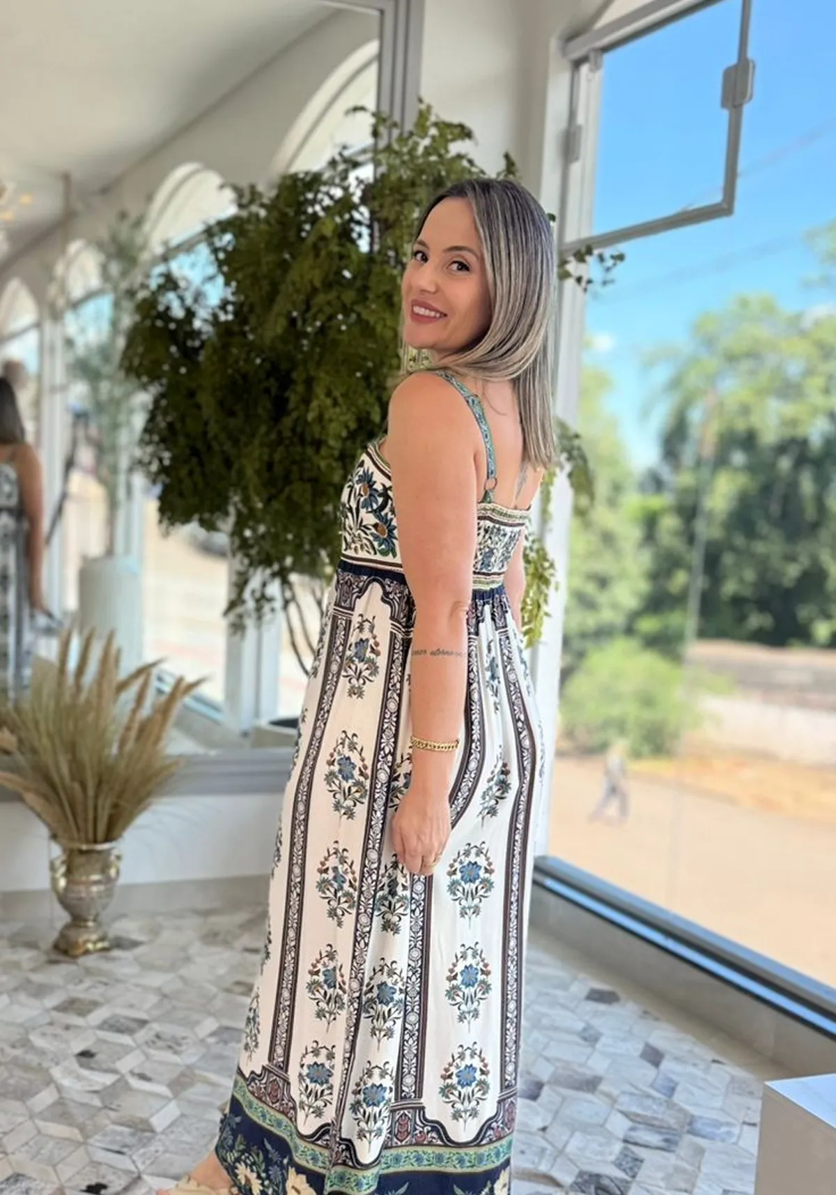 A ausência de mangas garante um toque extra de leveza, enquanto a estampa exclusiva adiciona identidade e cor ao look. Uma peça versátil, perfeita para passeios, viagens e produções casuais com aquele toque tropical que só a Farm tem.