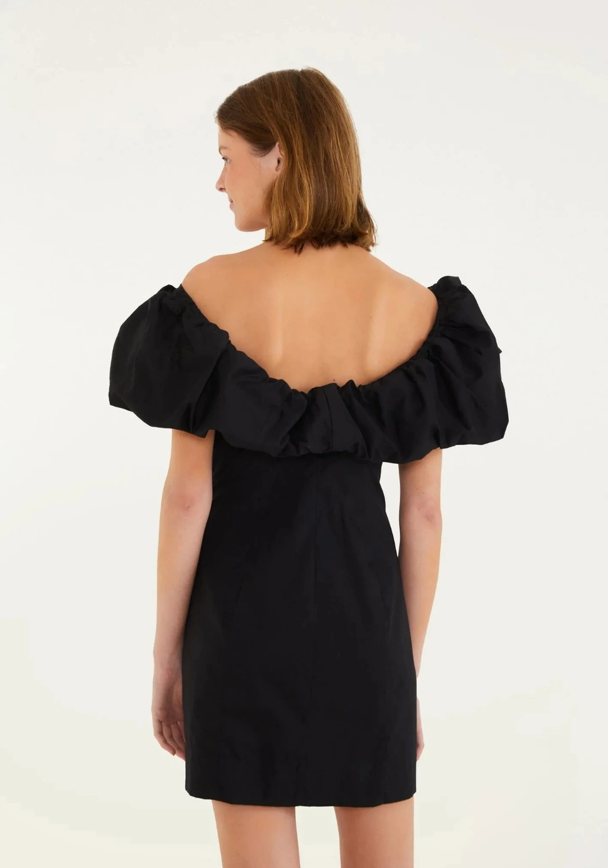 Com modelagem curta e mangas bufantes, o vestido da Farm combina estilo moderno e conforto. A cor preta clássica garante versatilidade, tornando a peça perfeita para looks casuais ou produções mais sofisticadas.