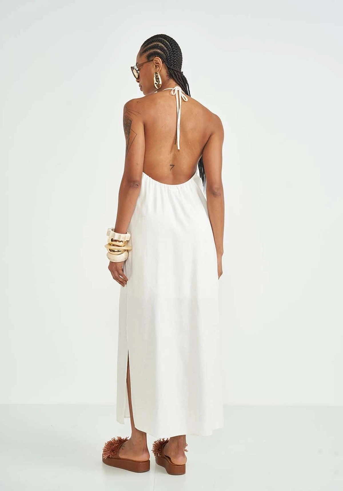 O tom Off Natural reforça o visual clean e versátil, ideal para compor looks modernos tanto para o dia quanto para ocasiões especiais. Com modelagem minimalista e detalhes refinados, o vestido entrega um estilo effortless chic, característico da Colcci.