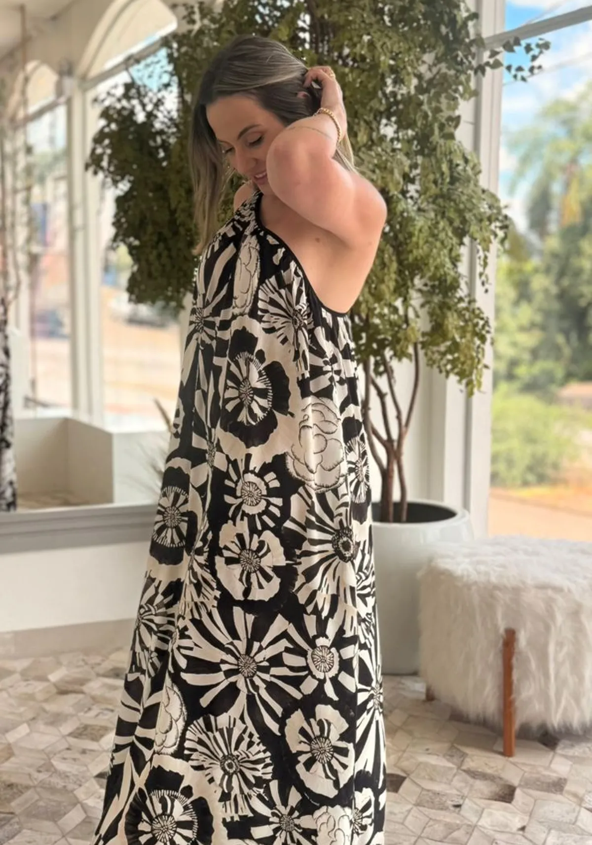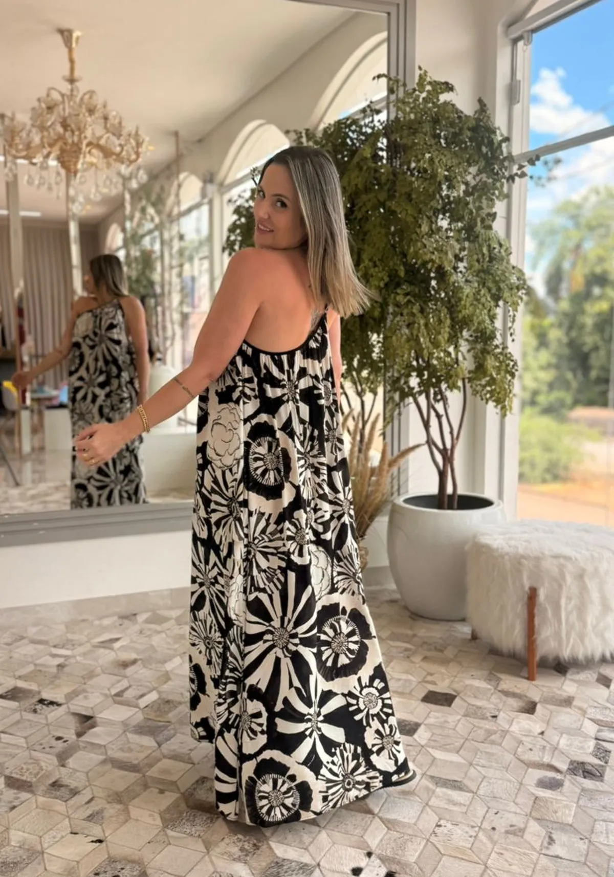 O Vestido Ombro Só Estampado Flora Farm une modernidade e frescor em uma peça cheia de charme. Confeccionado em tecido leve, aposta na modelagem de um ombro só com alça em rolotê, que valoriza a silhueta de forma sofisticada. A estampa exclusiva Flora traz cores vibrantes inspiradas na natureza, traduzindo a essência tropical da marca. Versátil, pode ser usado em produções casuais com sandálias ou em ocasiões especiais com acessórios mais elegantes.