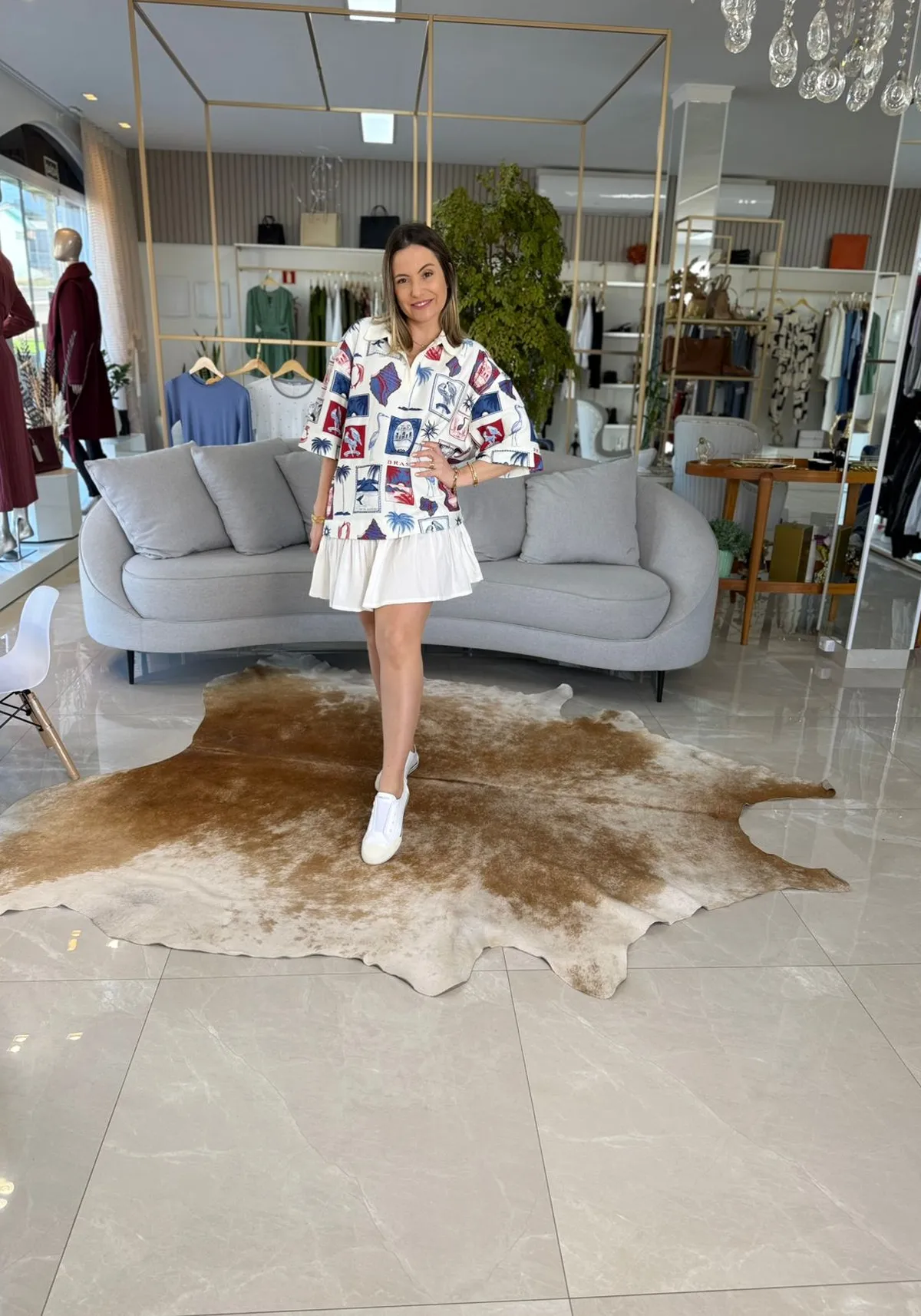 Um clássico renovado com alma tropical. O Vestido Polo Tropical Vintage Farm combina a elegância da modelagem polo com a leveza das estampas vibrantes inspiradas na natureza brasileira. Com gola tradicional, botões frontais e caimento confortável, ele traz uma proposta casual chic perfeita para os dias ensolarados.
